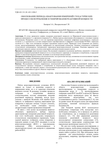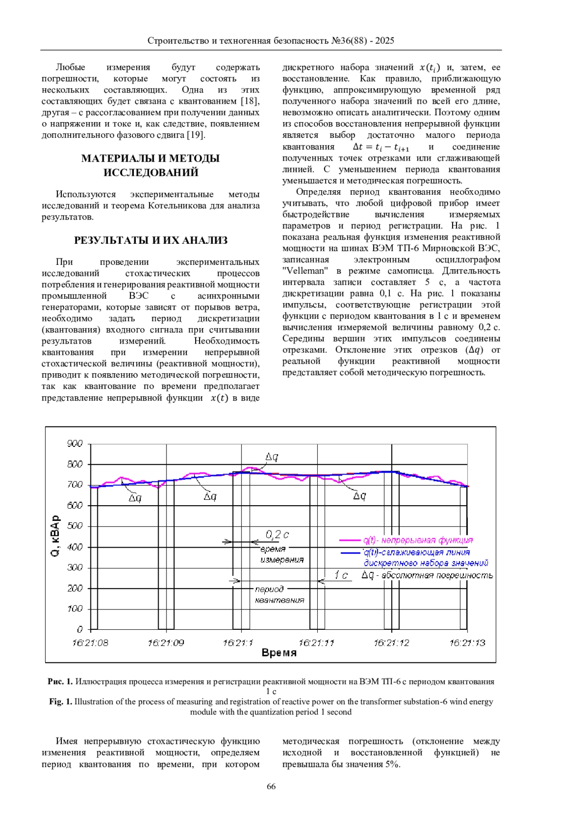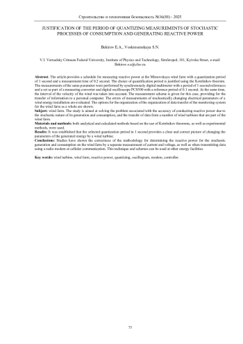 Работа ветроэнергетических установок (ВЭУ) зависит не только от величины скорости и направления ветра, но и от характера изменения ветрового потока. В реальных условиях процессы генерации и потребления являются стохастическими, поэтому измеренные значения реактивной мощности, например, всегда будут указаны с ошибкой. Величина этой ошибки будет зависеть от выбранного периода квантования при измерении и передаче сигнала. Следует отметить, что необходимо также учитывать частоту дискретизации и время проведения измерений.