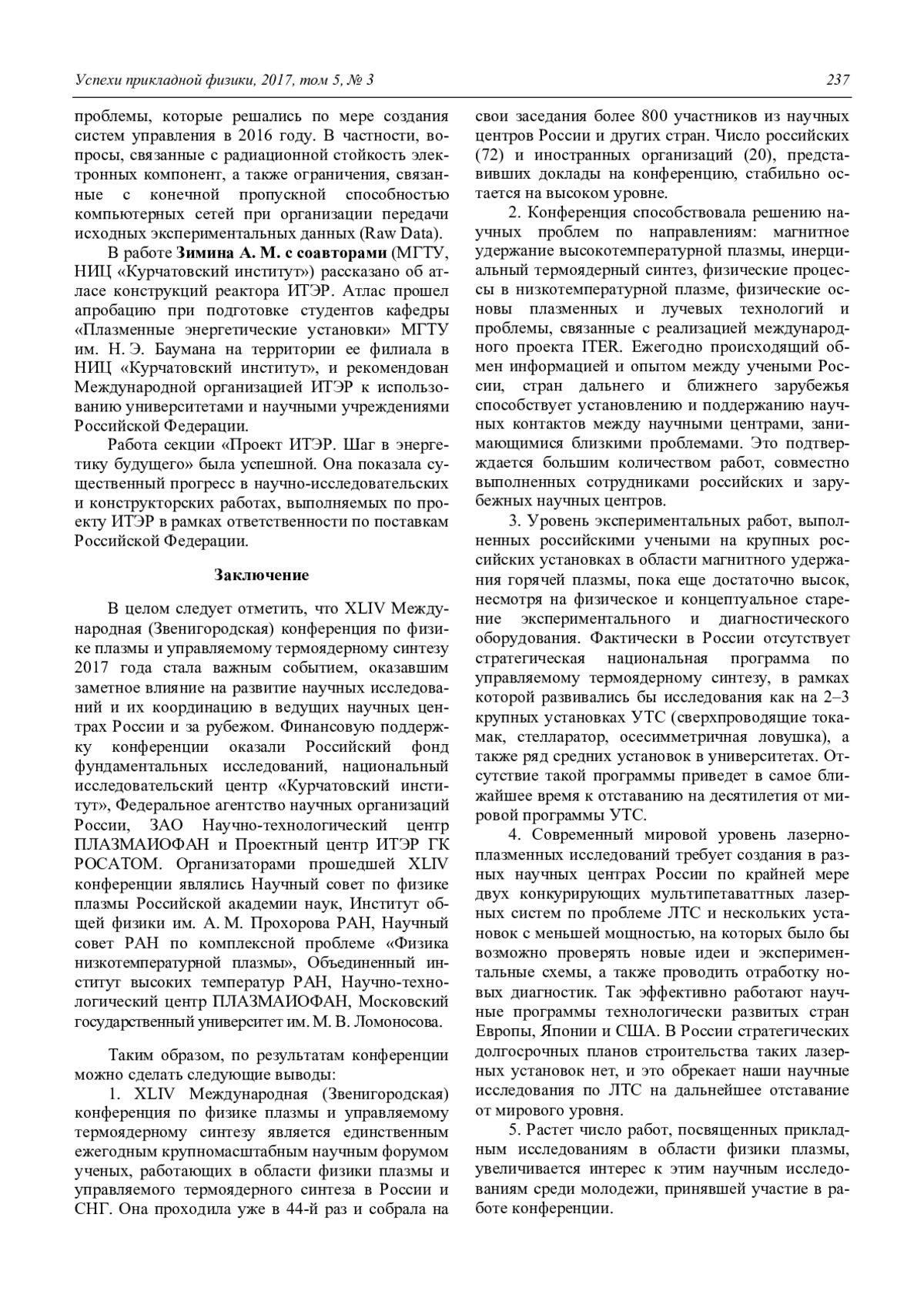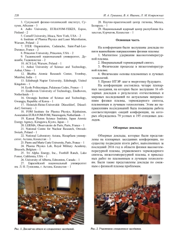 Гришина И. А., Иванов В. А., Коврижных Л. М. Состояние исследований в области физики плазмы и плазменных технологий в России в 2016 году (обзор материалов XLIV Международной Звенигородской конференции по физике плазмы и управляемому термоядерному синтезу) 218