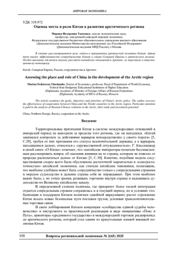 В статье рассматриваются цели, задачи и приоритеты арктической политики Китая. Автор дает оценку эффективности сотрудничества Китая и стран Северной Европы в арктическом регионе. Особое внимание уделяется анализу российско-китайских отношений в Арктике, их торговому и инвестиционному потенциалу.