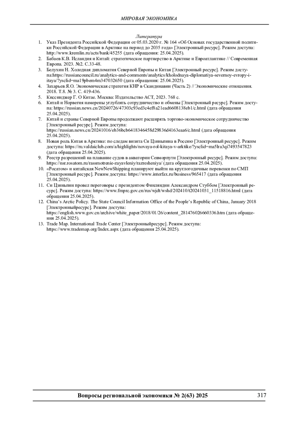 7. Китай и страны Северной Европы продолжают расширять торгово-экономическое сотрудничество [Электронный ресурс]. Режим доступа: https://russian.news.cn/20241016/eb36bcb6418346458d29836d4163eaa6/c.html (дата обращения 25.04.2025).