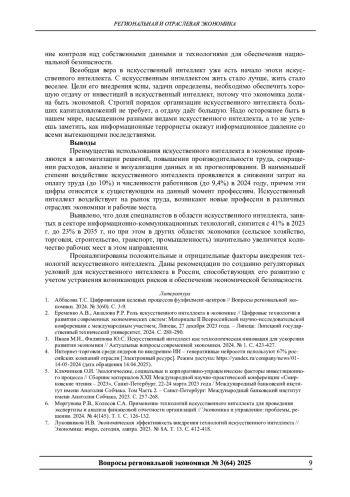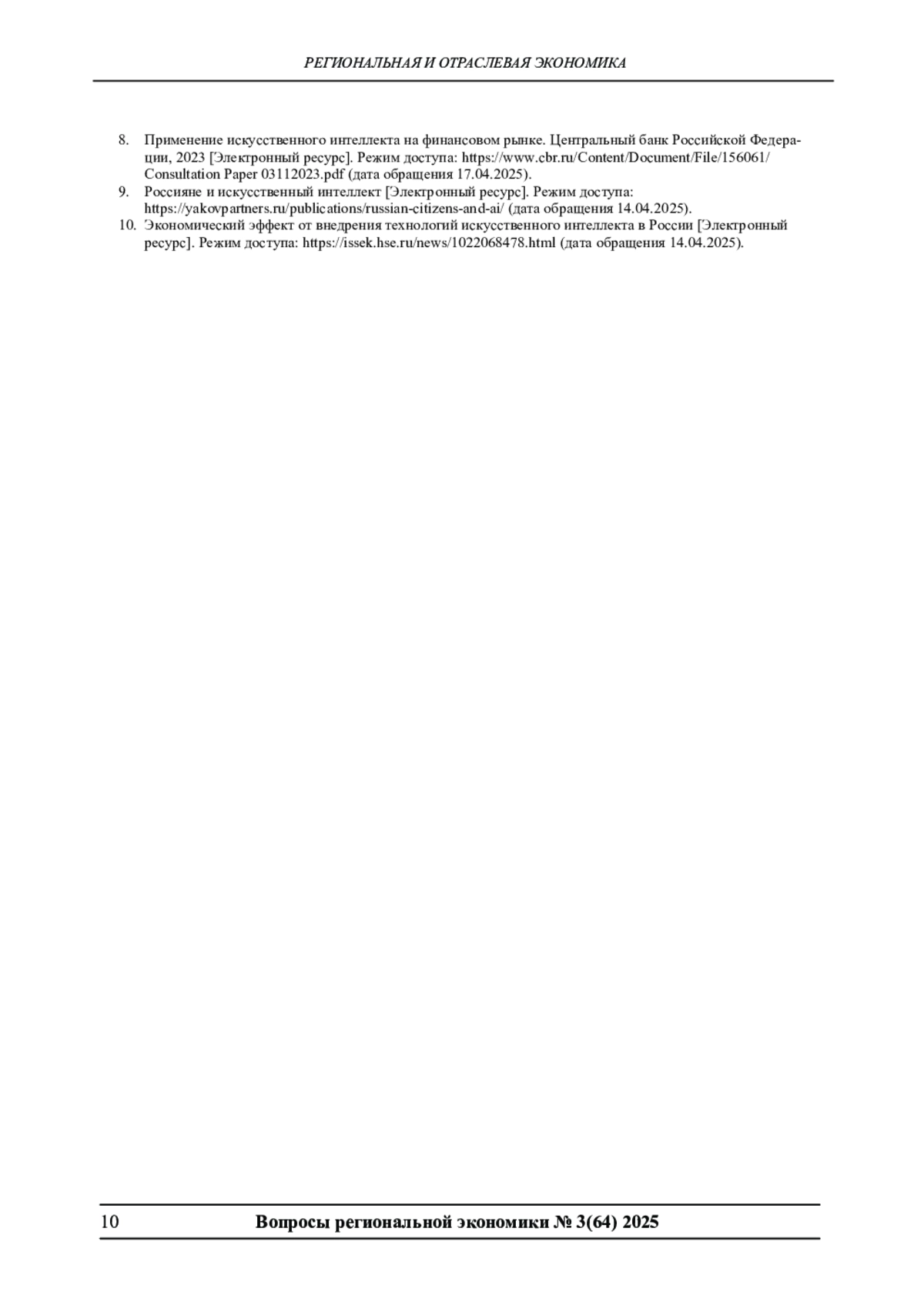 10. Окономический эффект об внедрения atхнолоиий искусственного интеллекла в Россаи [Элестроюный ресурс]. Режим доступа: https://issek.hse.ru/news/1022068478.html (дата обращения 14.04.2025).