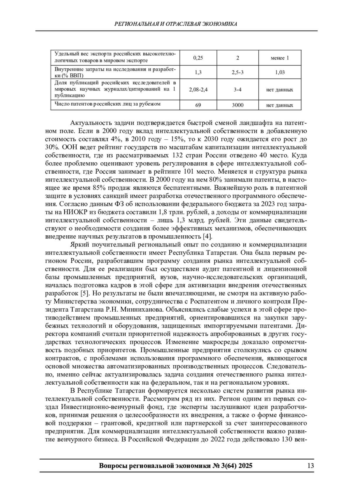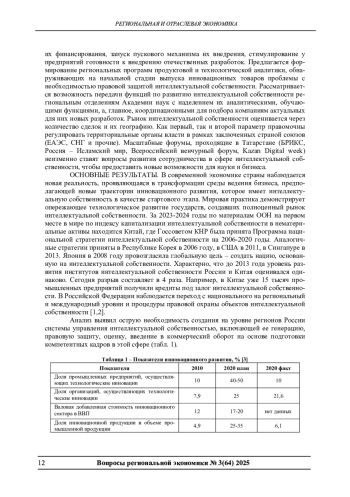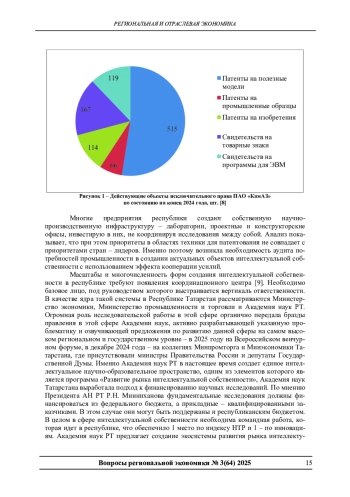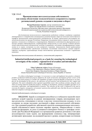Для достижения технологического суверенитета необходимо создание и внедрение в практику адаптированного к потребностям инновационного развития базовых отраслей экономики отечественного портфеля промышленной интеллектуальной собственности. В статье предлагается рассмотреть возможности регионов (на примере Республики Татарстан) для развития данного процесса, опыт локальных практик и механизмы их поддержки и тиражирования. Выявляется необходимость формирования региональных центров ответственности, координирующих деятельность по всей цепочке создания промышленной интеллектуальной собственности, включая ее разработку, подготовку квалифицированных специалистов по ее оценке, постановке на учет, внедрению в практику. Актуальность данной проблематики усиливается необходимостью преодоления негативных последствий экономических санкций недружественных государств, ограничивающих доступ отечественных промышленных компаний к зарубежным патентам.