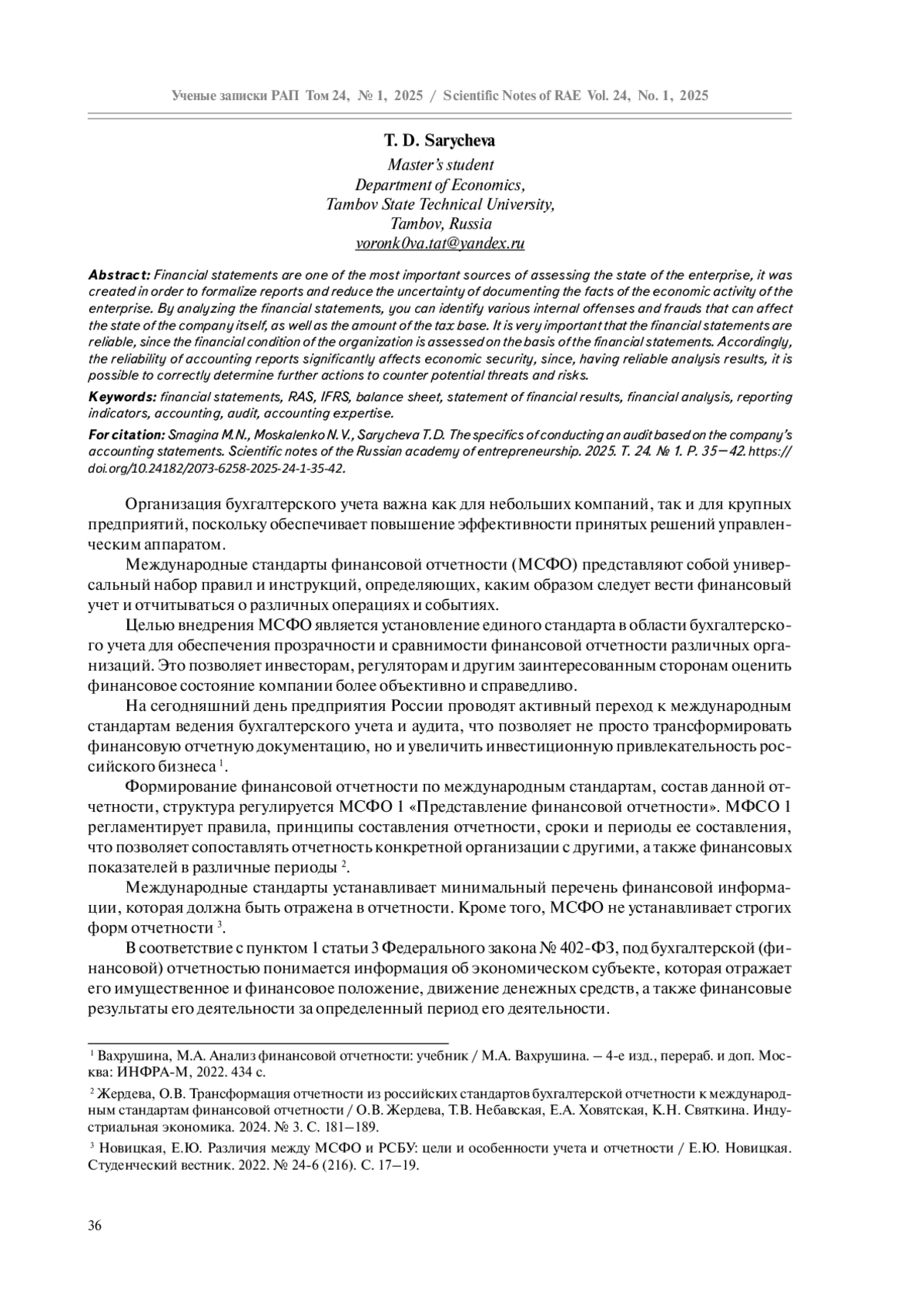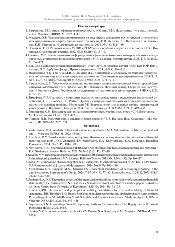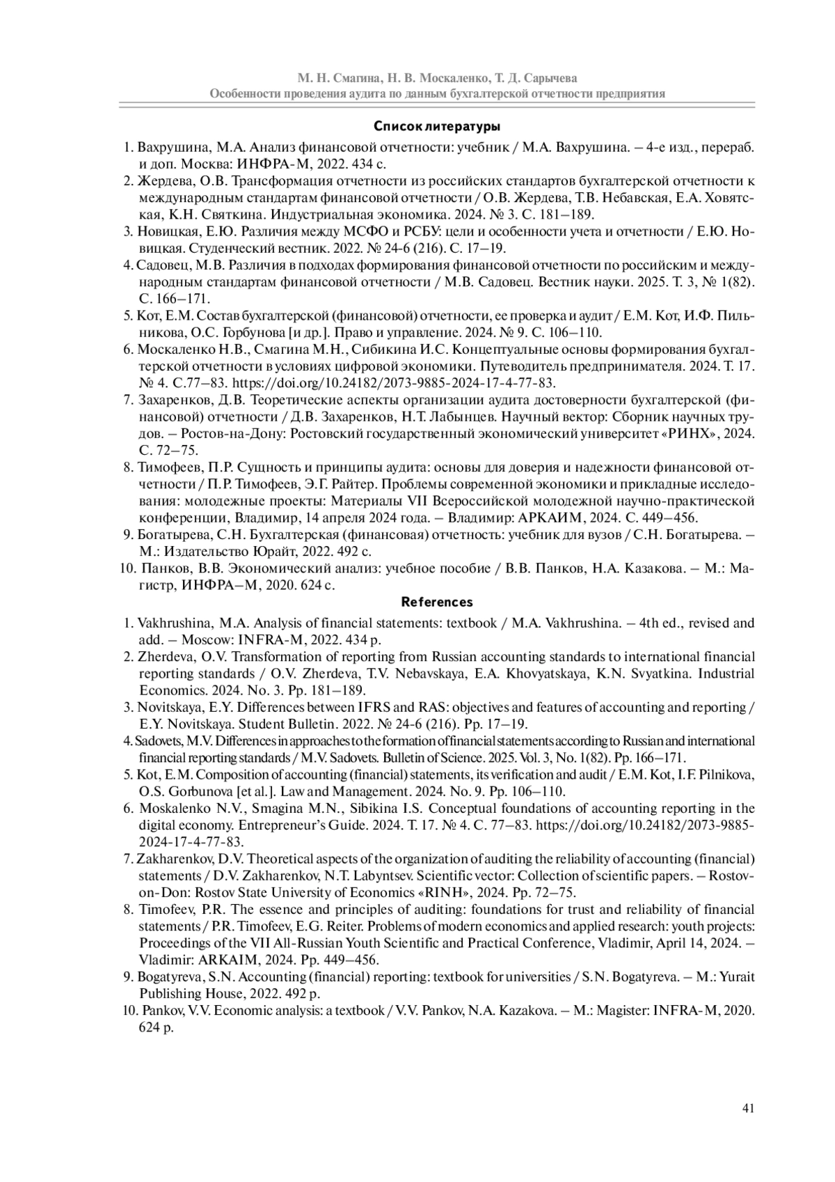 4. Садовец, М.В. Различия в подходах формирования финансовой отчетности по российским и международным стандартам финансовой отчетности / М.В. Садовец. Вестник науки. 2025. Т. 3, № 1(82). С. 166-171.