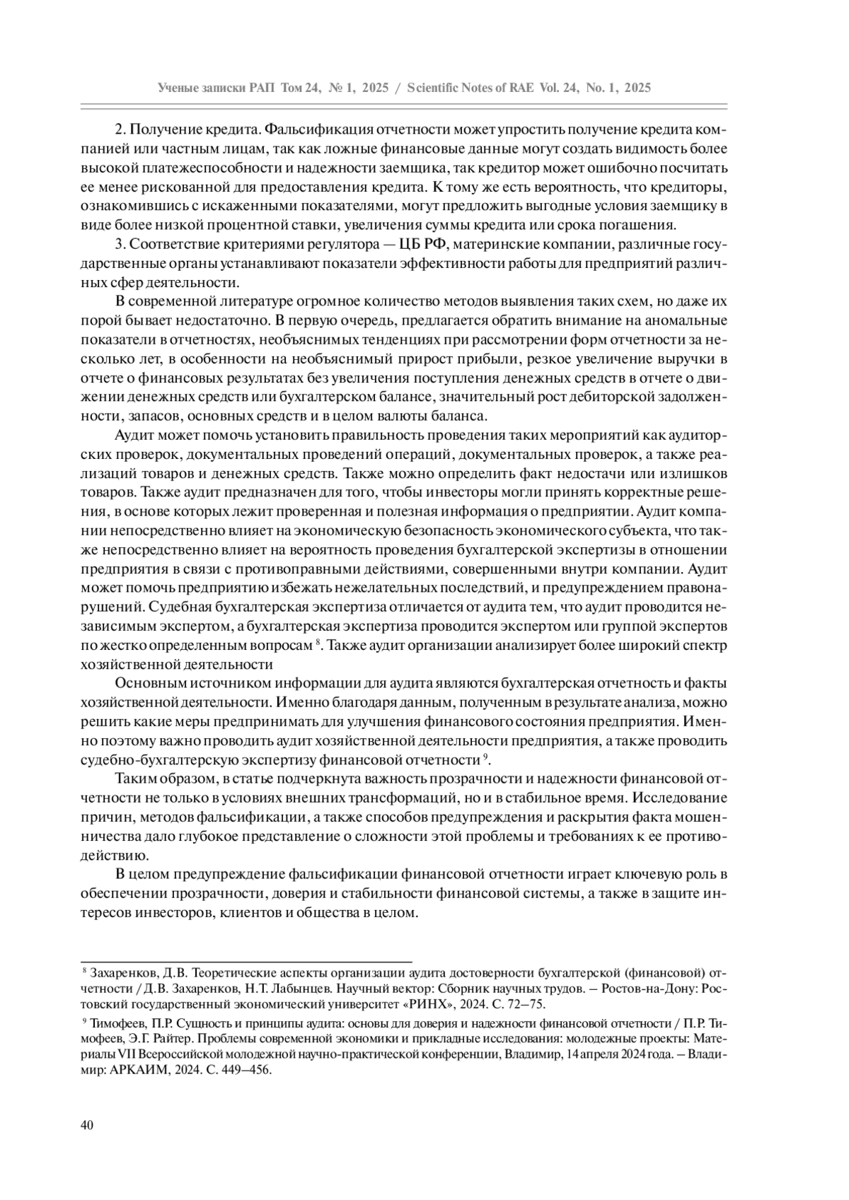 8. Тимофеев, П.Р. Сущность и принципы аудита: основы для доверия и надежности финансовой отчетности / П.Р. Тимофеев, Э.Г. Райтер. Проблемы современной экономики и прикладные исследования: молодежные проекты: Материалы VII Всероссийской молодежной научно-практической конференции, Владимир, 14 апреля 2024 года. - Владимир: АРКАИМ, 2024. С. 449-456.