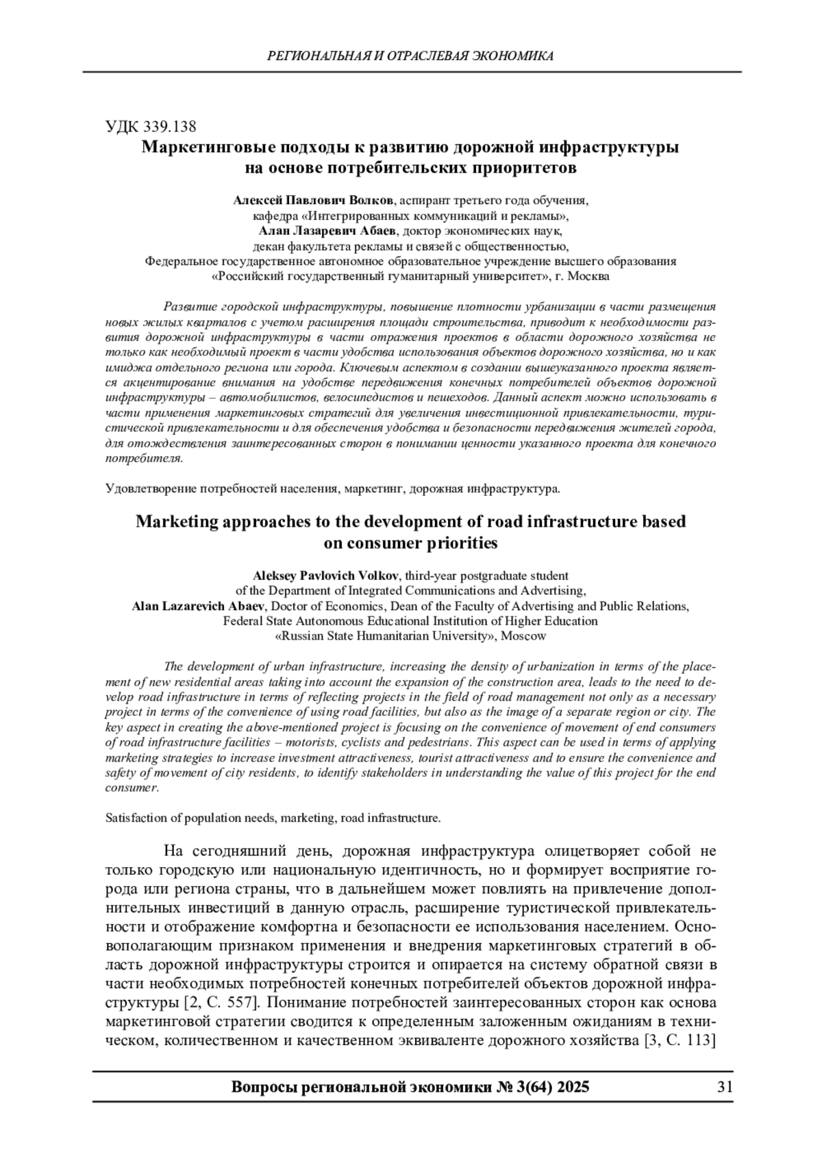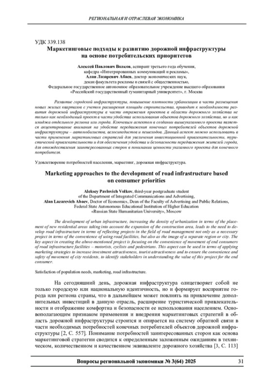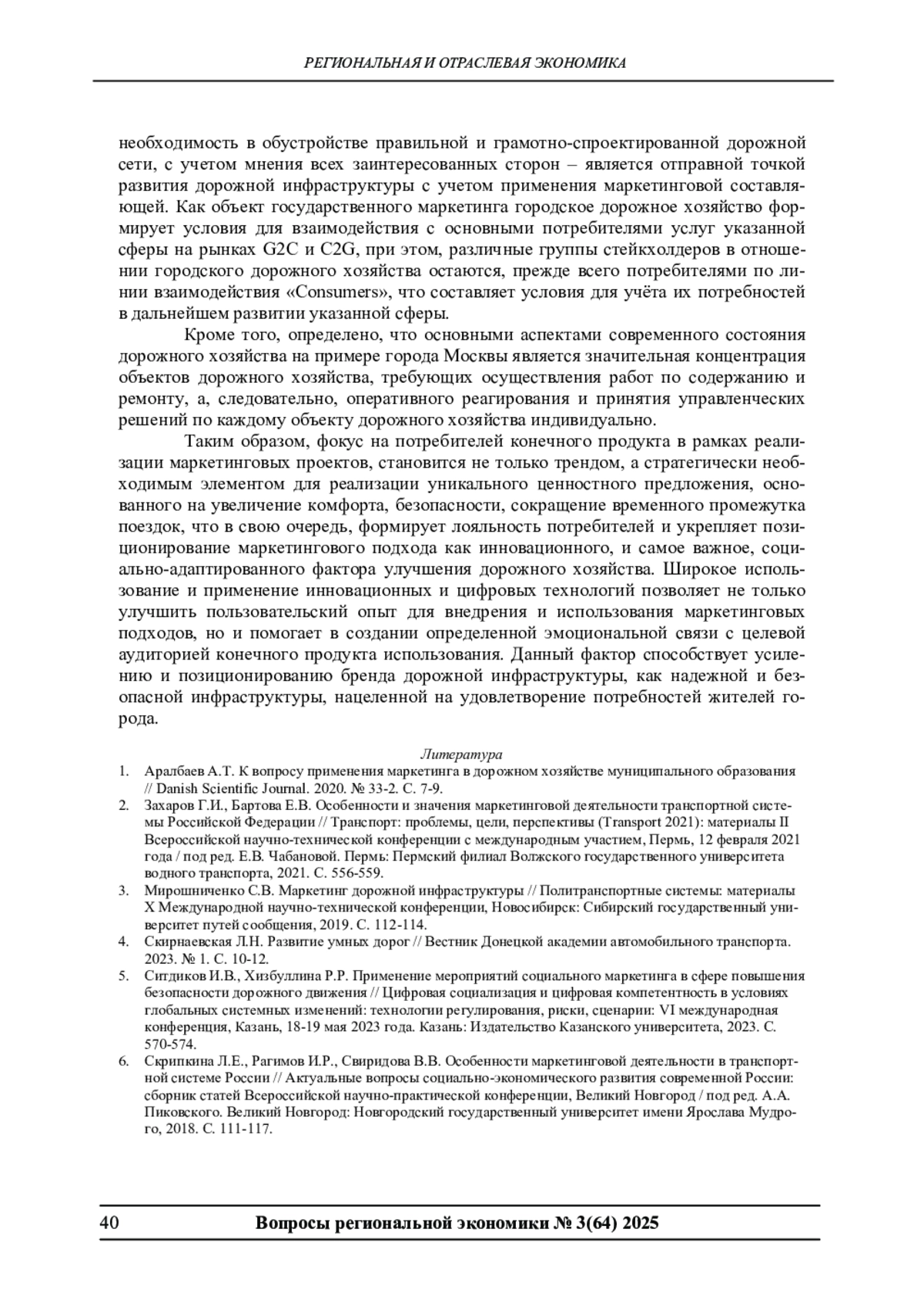1. Аралбаев А.Т. К вопросу применения маркетинга в дорожном хозяйстве муниципального образования // Danish Scientific Journal. 2020. № 33-2. С. 7-9. EDN: DECKNS