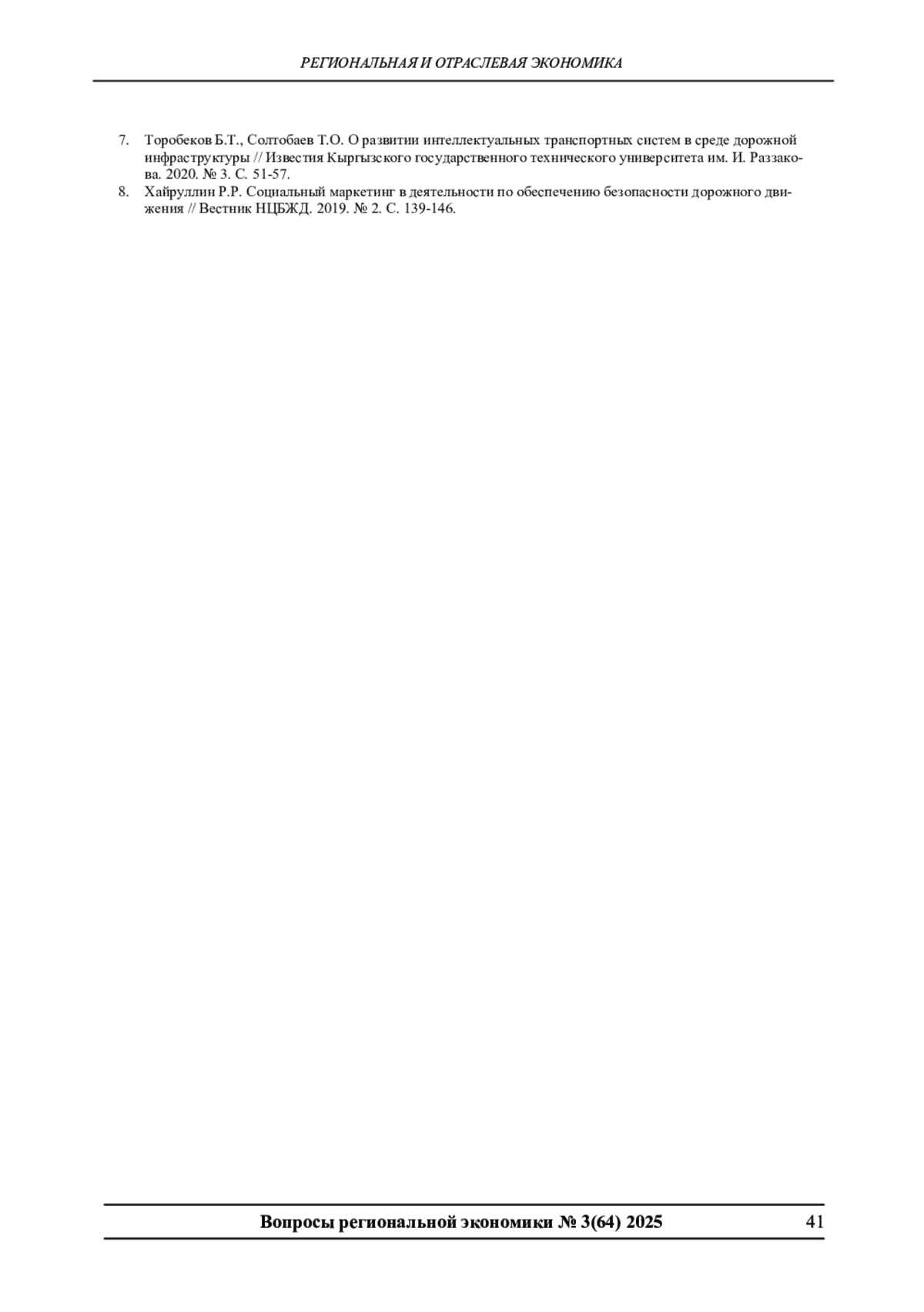 7. Торобеков Б.Т., Солтобаев Т.О. О развитии интеллектуальных транспортных систем в среде дорожной инфраструктуры // Известия Кыргызского государственного технического университета им. И. Раззакова. 2020. № 3. С. 51-57. EDN: BNSZHO