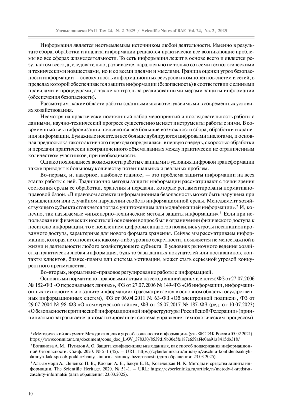 5. Богданова А.М., Путилов А.О. Защита конфиденциальных данных, как способ поддержания информационной безопасности. Скиф. 2020. № 5-1 (45). - URL: https://cyberleninka.ru/article/n/zaschita-konfidentsialnyh-dannyh-kak-sposob-podderzhaniya-informatsionnoy-bezopasnosti (дата обращения: 23.03.2025).