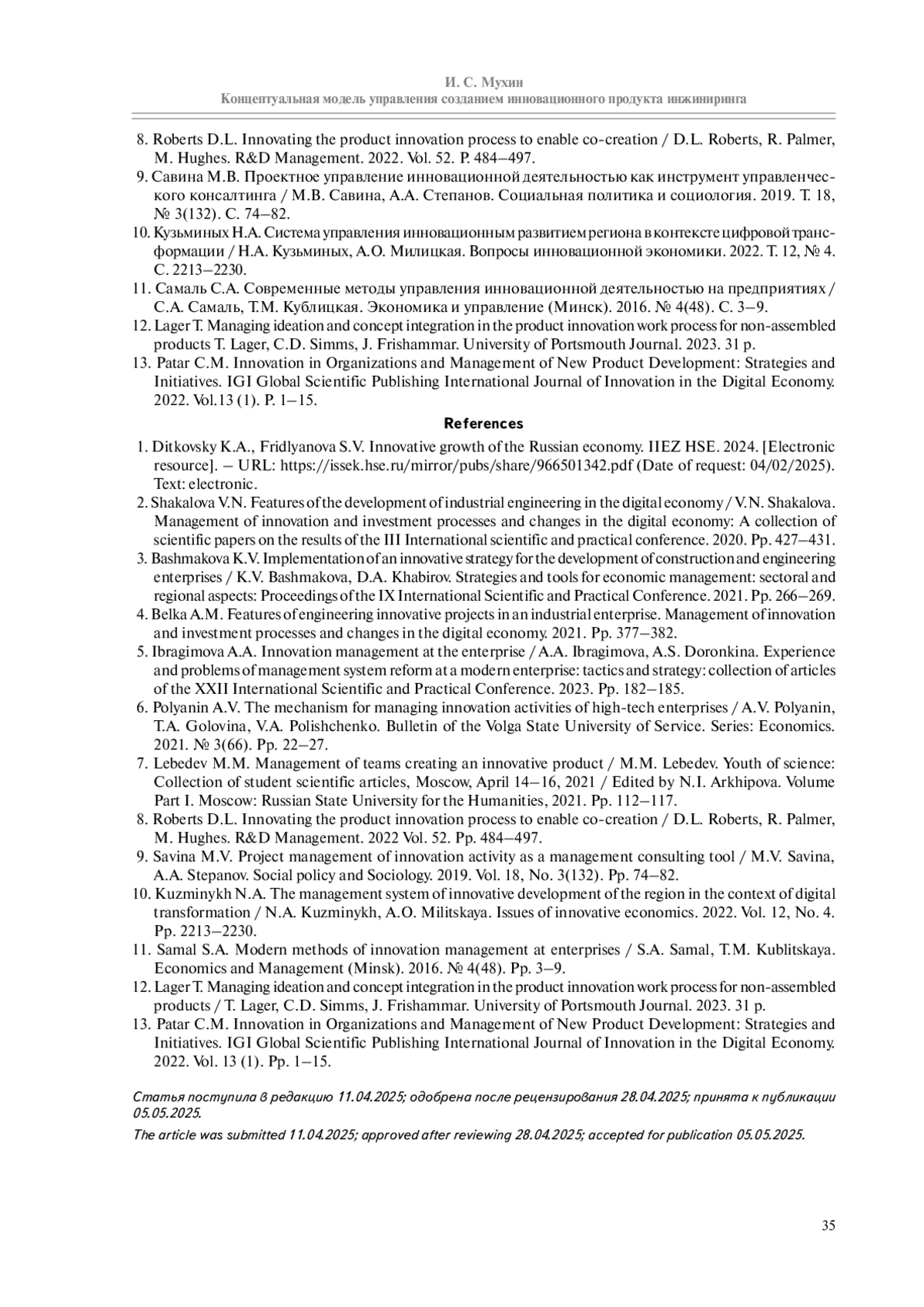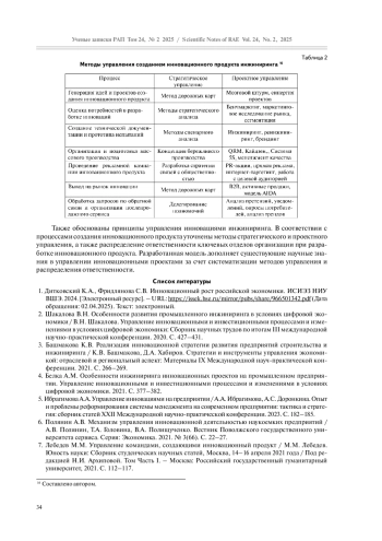 4. Белка А.М. Особенности инжиниринга инновационных проектов на промышленном предприятии. Управление инновационными и инвестиционными процессами и изменениями в условиях цифровой экономики. 2021. С. 377-382.