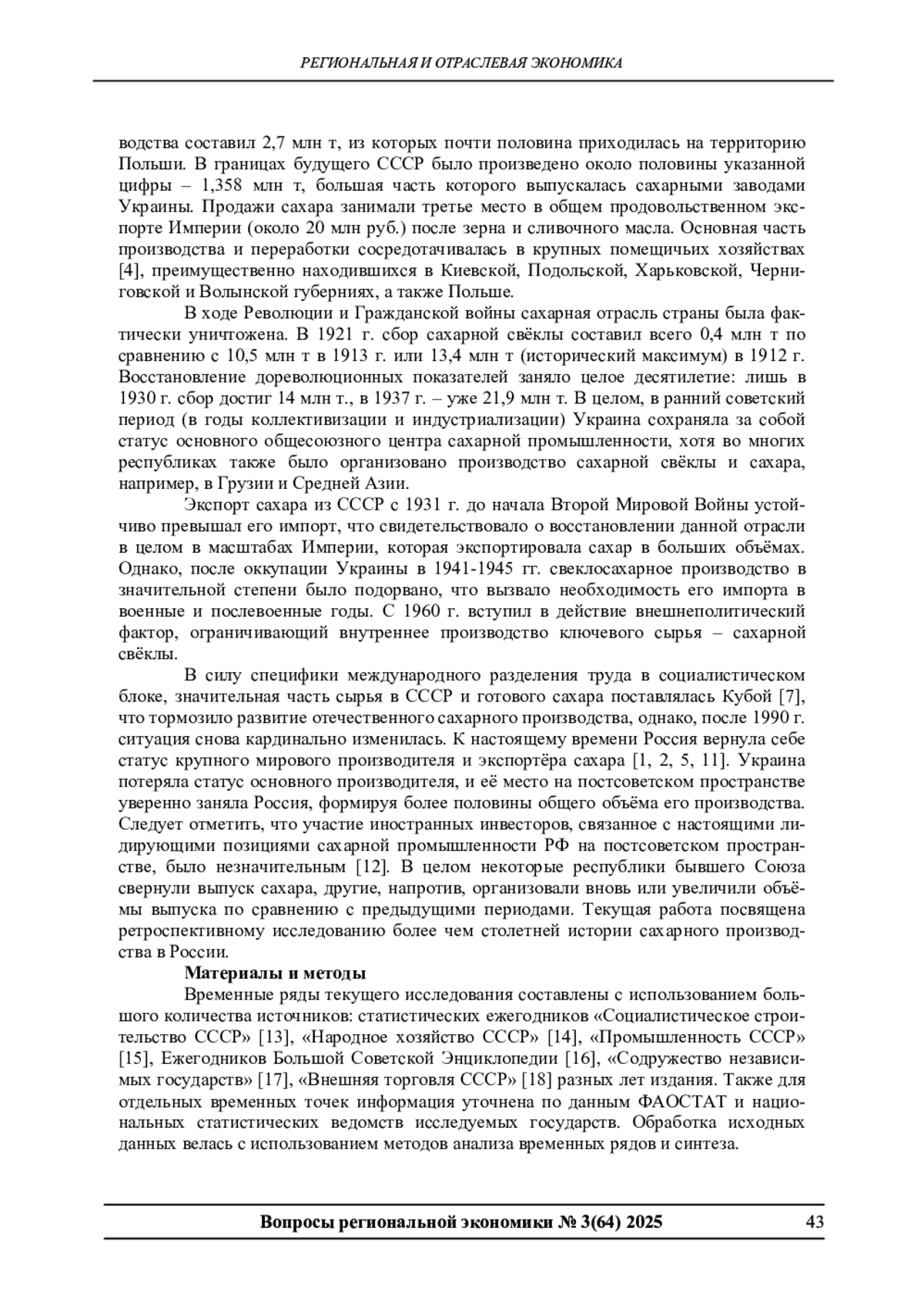 11. Нечаев В.И., Михайлушкин П.В., Писарева Л.В., Аржанцев С.А. Развитие свеклосахарного производства в России: современные реалии и экспортные возможности // Экономика, труд, управление в сельском хозяйстве. 2020. № 10(67). С. 51-61. DOI: 10.33938/2010-51 EDN: LBZGBR