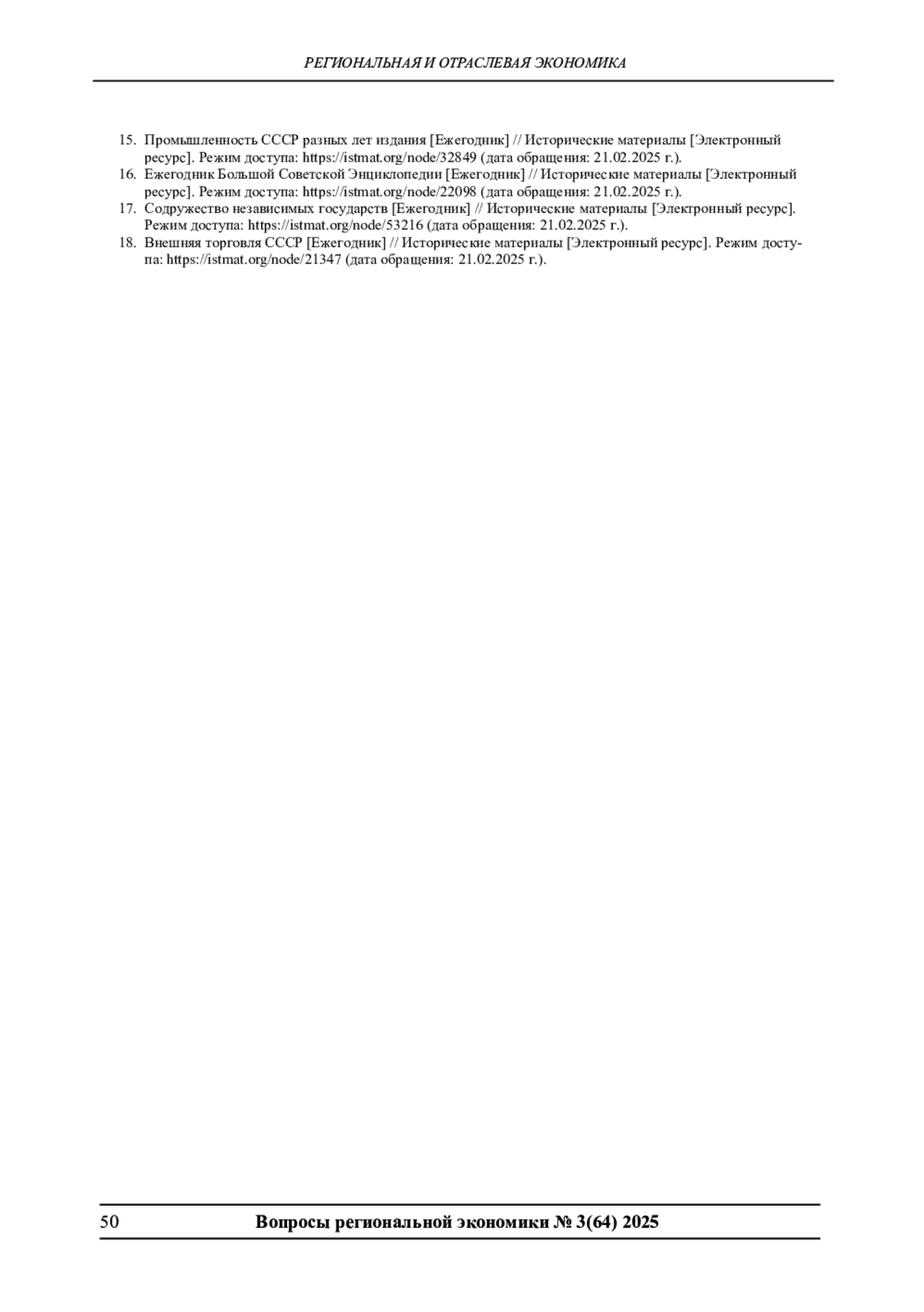 15. Промышленность СССР разных лет издания [Ежегодник] // Исторические материалы [Электронный ресурс]. Режим доступа: https://istmat.org/node/32849 (дата обращения: 21.02.2025 г.).