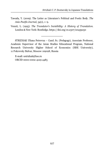 7. Numano, M. (2012). Haruki vs. Karamazov. The Influence of the Great Russian Literature on Contemporary Japanese Writers. Renyxa, 3, 188-206.