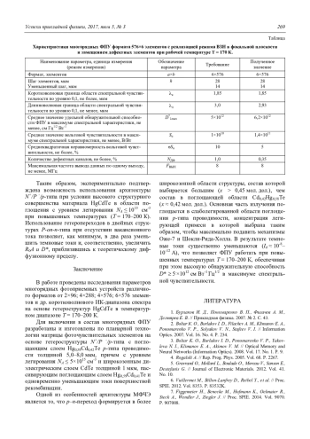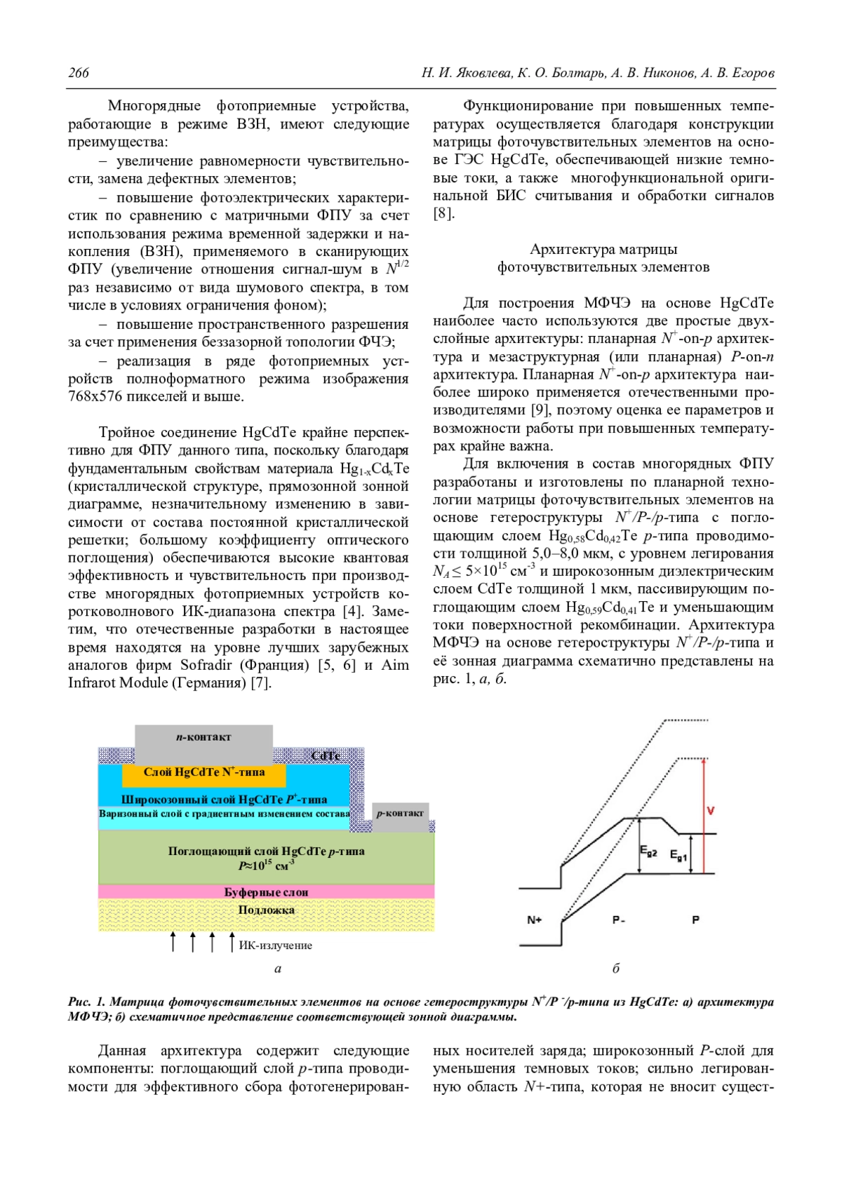 Яковлева Н. И., Болтарь К. О., Никонов А. В., Егоров А. В. Многорядные фотоприемные устройства на основе гетероэпитаксиальных структур HgCdTe коротковолнового ИК-диапазона спектра 265