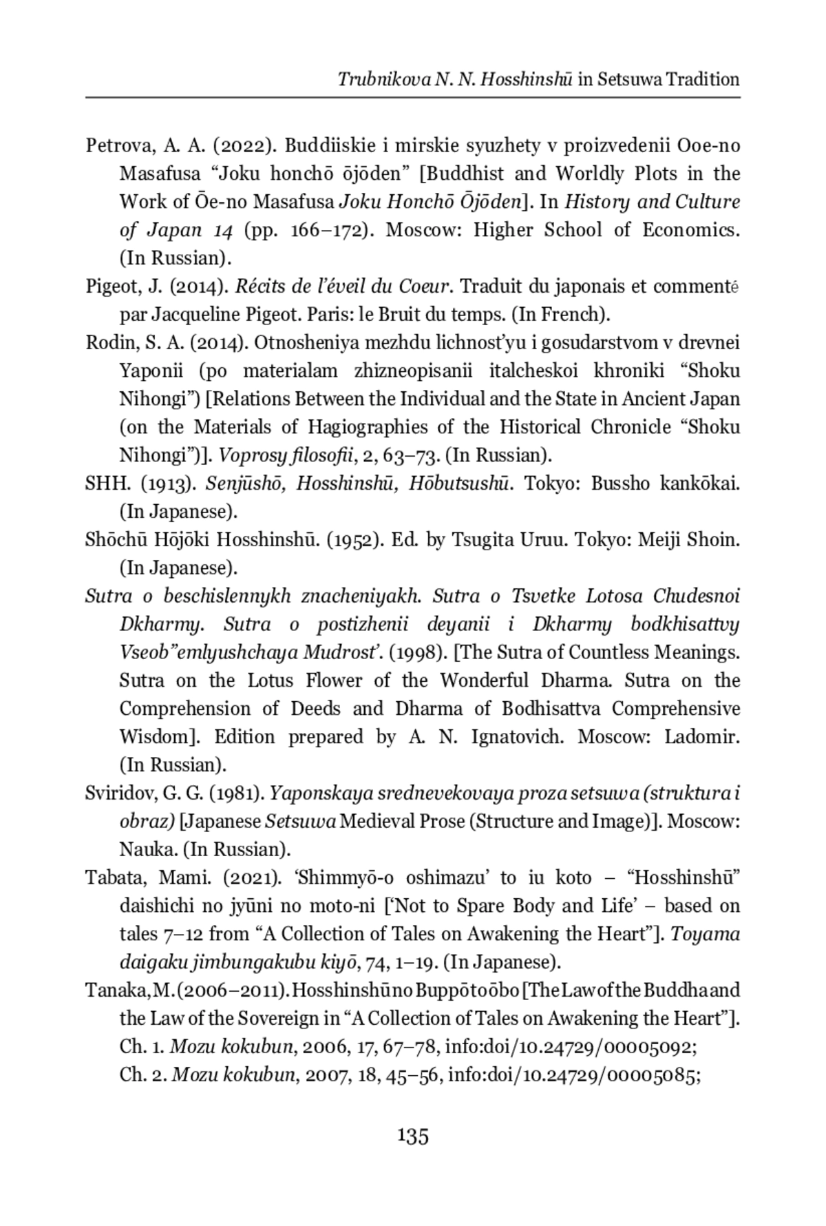 2. Goreglyad, V. N. (1997). Yaponskaya literatura VIII-XVI vv. Nachalo i razvitie traditsii. Saint Petersburg: Petersburgskoe Vostokovedenie. (In Russian).