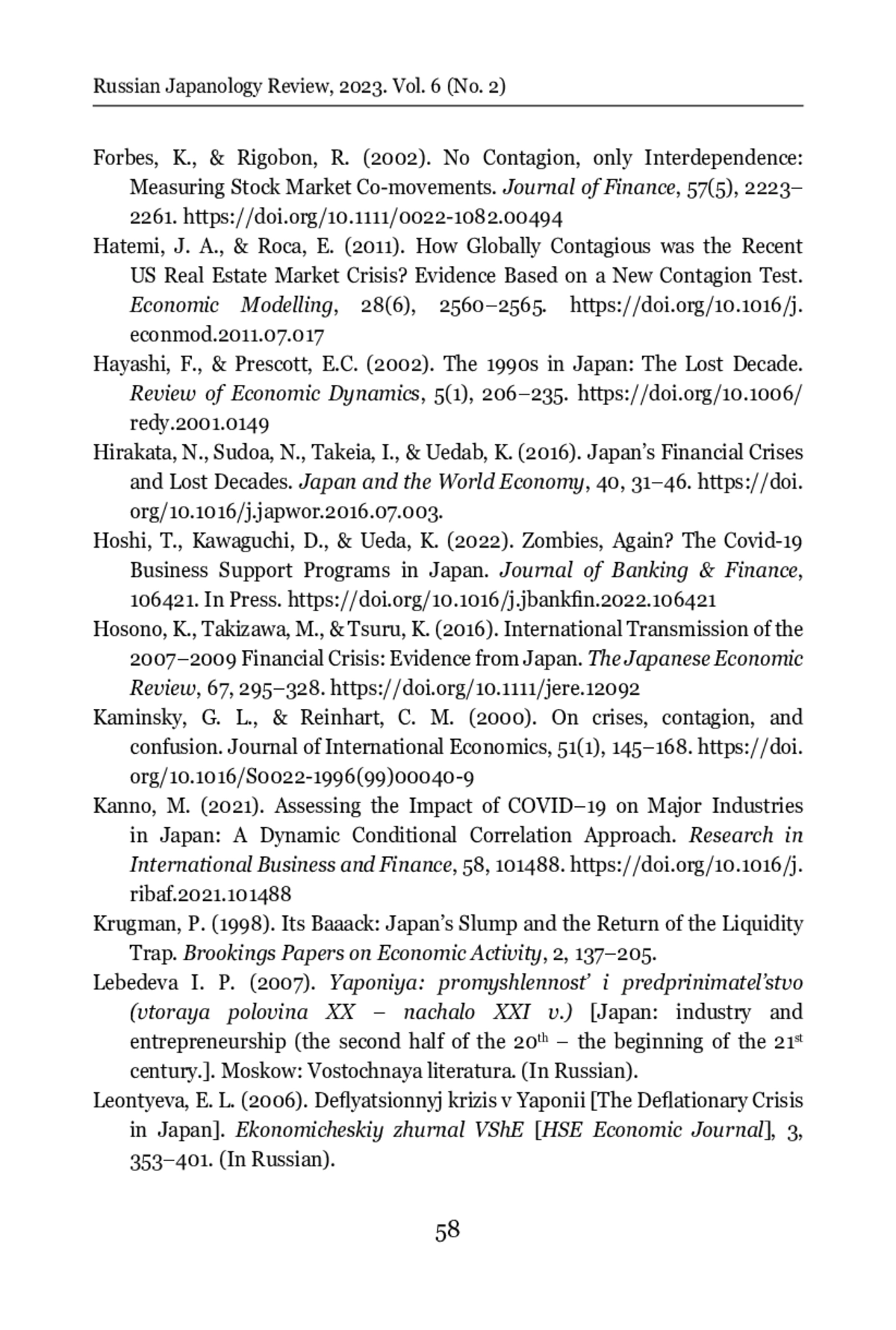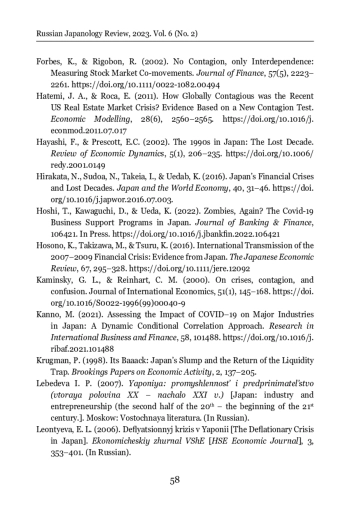 19. Leontyeva, E. L. (2006). Deflyatsionnyj krizis v Yaponii. Ekonomicheskiy zhurnal VShE, 3, 353-401. (In Russian). EDN: HVDPQH