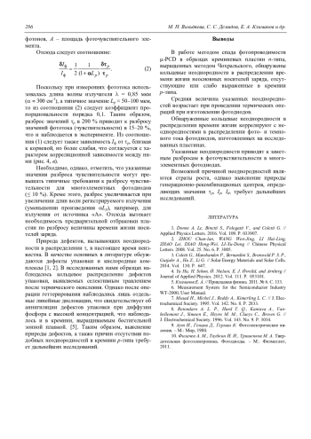 1. Donne A. Le, Binetti S., Folegatti V., and Coletti G. // Applied Physics Letters. 2016. Vol. 109. P. 033907.