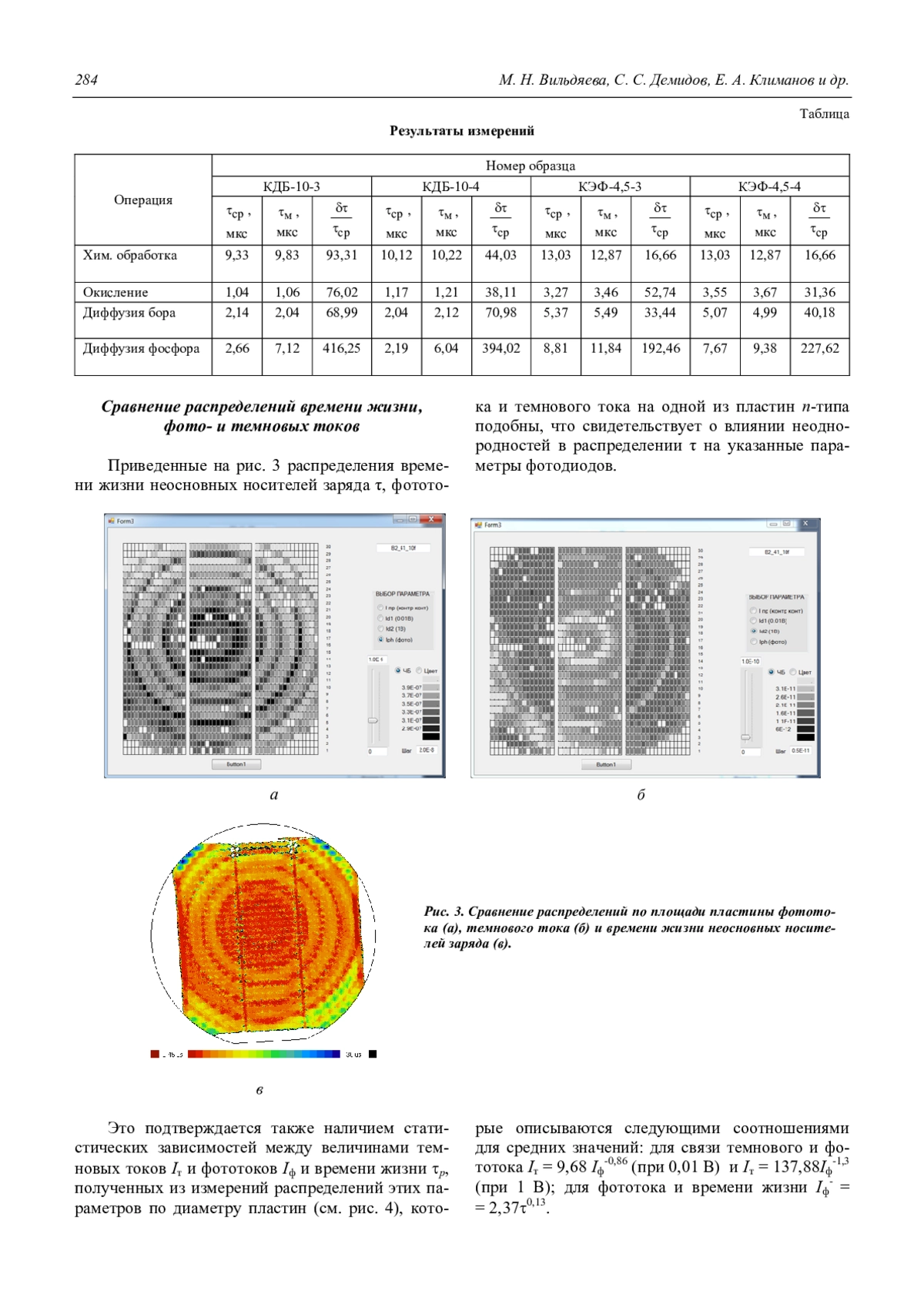 Вильдяева М. Н., Демидов С. С., Климанов Е. А., Ляликов А. В., Фокина А. С. Влияние кольцевой неоднородности распределения времени жизни носителей заряда в кремниевых пластинах на параметры фотодиодов 282