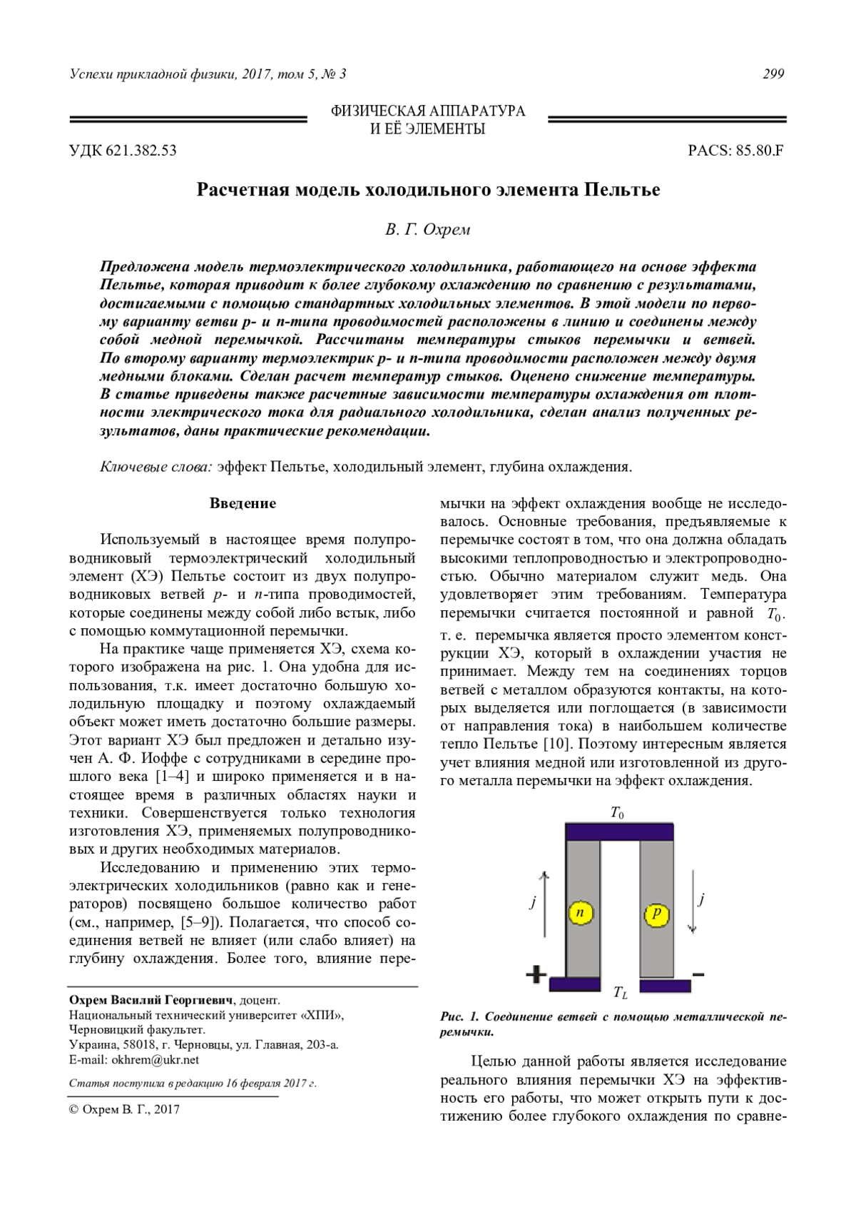 Охрем В. Г. Расчетная модель холодильного элемента Пельтье 299