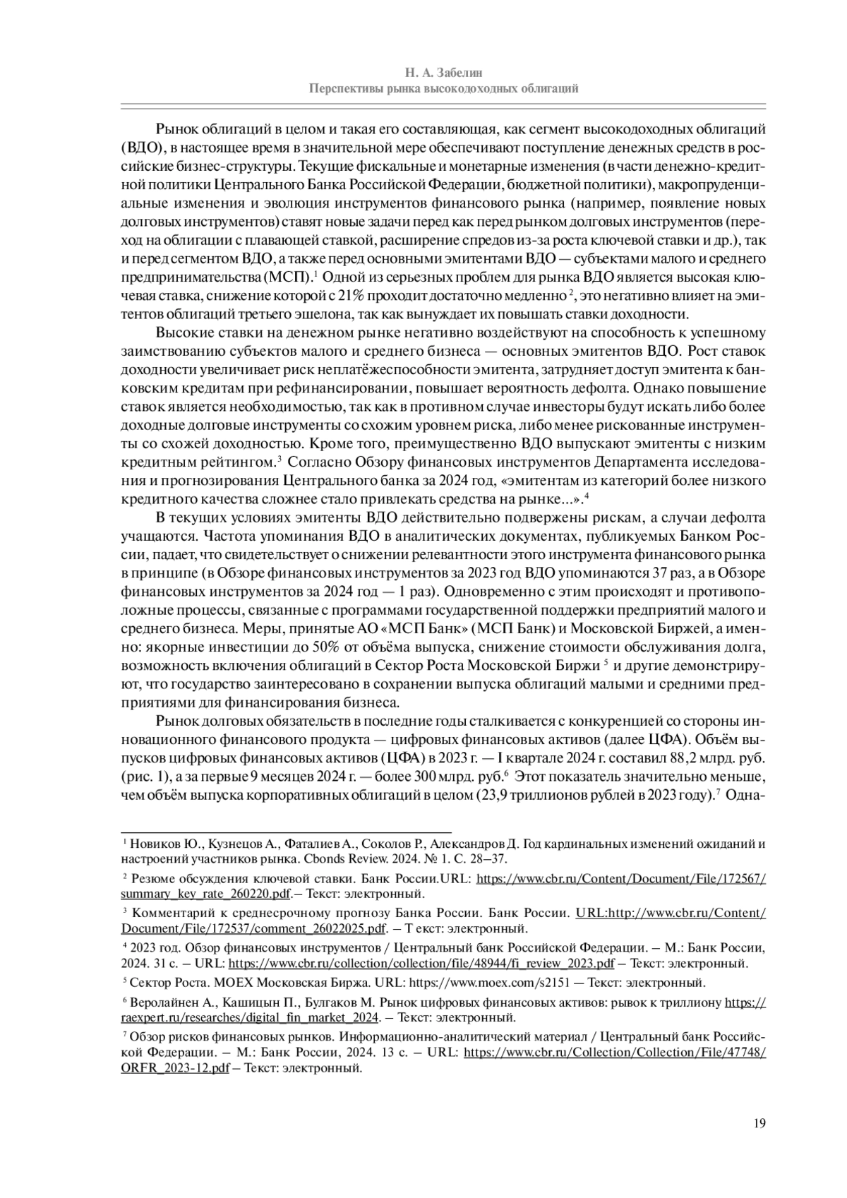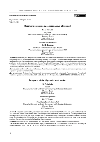 В работе рассматриваются возможные перспективы развития российского рынка высокодоходных облигаций, также затрагиваются отдельные вопросы, связанные с функционированием компаний малого и среднего бизнеса. Изучение вопроса перспектив рынка, было проведено в разрезе сценариев макроэкономического развития, предложенных Центральным банком Российской Федерации. Также в статье уделяется внимание основным конкурентам высокодоходных облигаций в нише инструментов финансирования малого бизнеса, в том числе цифровым финансовым активам.