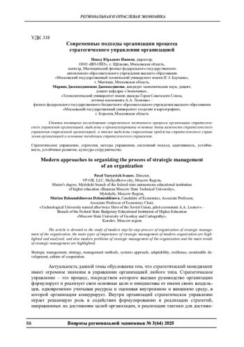 Статья посвящена исследованию современного поэтапного процесса организации стратегического управления организацией, выделены и проанализированы основные типы важности стратегического управления современной организацией, а также выделены современные проблемы стратегического управления организацией и основные тенденции стратегического управления.