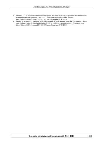 5. Eberhard K. The effects of visualization on judgment and decision-making: a systematic literature review / Management Review Quarterly, 73(1). 2023 [Электронный ресурс]. Режим доступа: 10.1007/s11301-021-00235-8 (дата обращения: 09.04.2025). DOI: 10.1007/s11301-021-00235-8( EDN: NHJANW