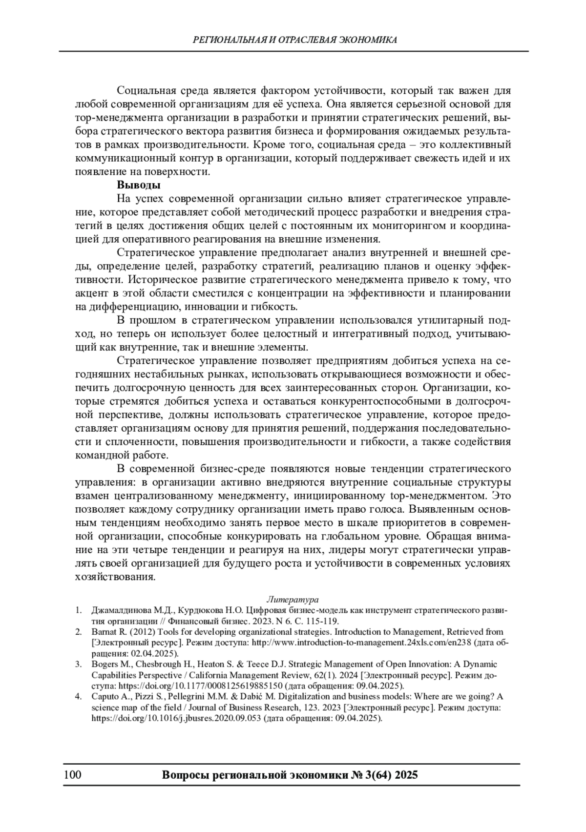 3. Bogers M., Chesbrough H., Heaton S. & Teece D.J. Strategic Management of Open Innovation: A Dynamic Capabilities Perspective / California Management Review, 62(1). 2024 [Электронный ресурс]. Режим доступа: 10.1177/0008125619885150 (дата обращения: 09.04.2025). DOI: 10.1177/0008125619885150(