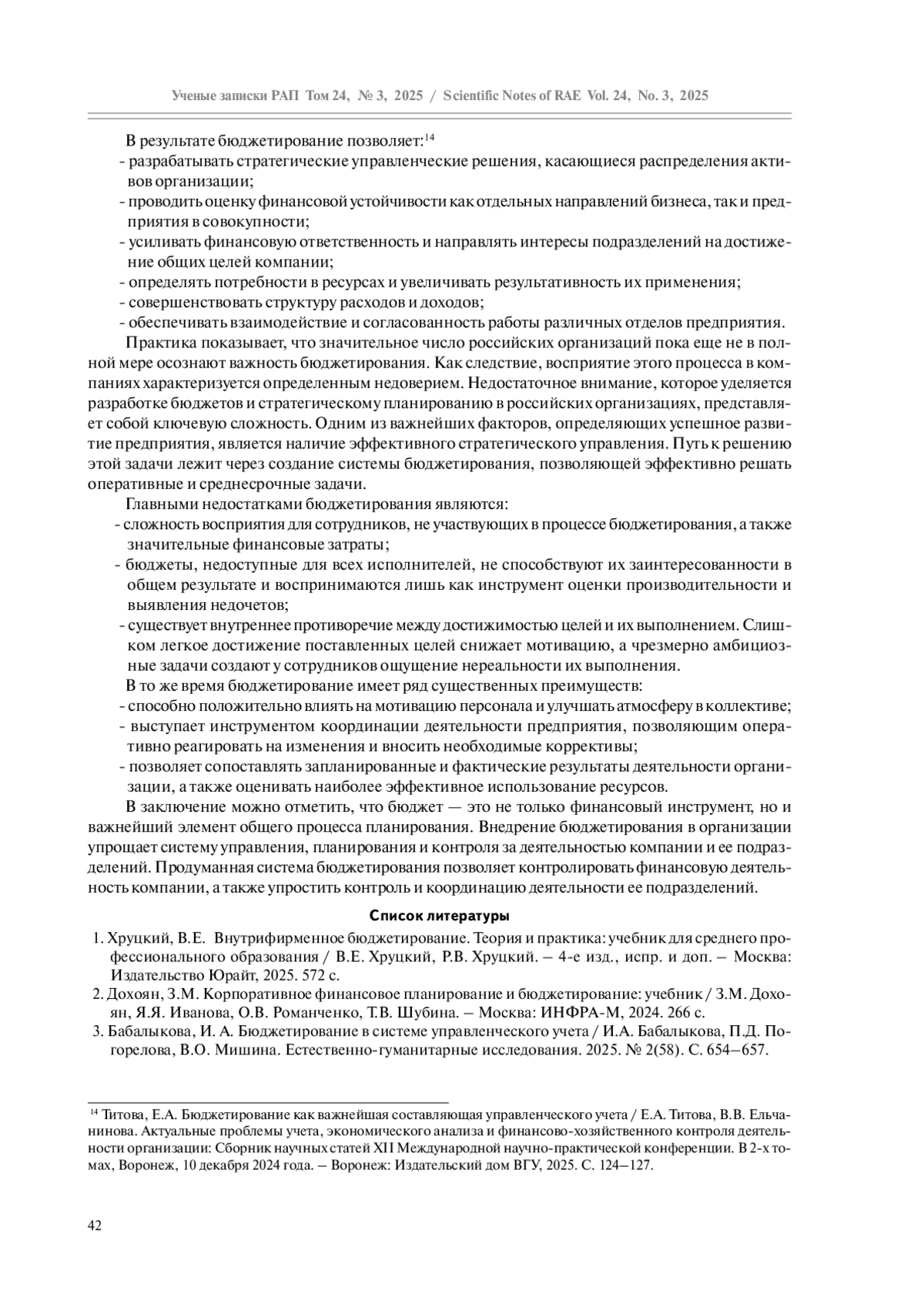 3. Бабалыкова, И. А. Бюджетирование в системе управленческого учета / И.А. Бабалыкова, П.Д. Погорелова, В.О. Мишина. Естественно-гуманитарные исследования. 2025. № 2(58). С. 654-657.