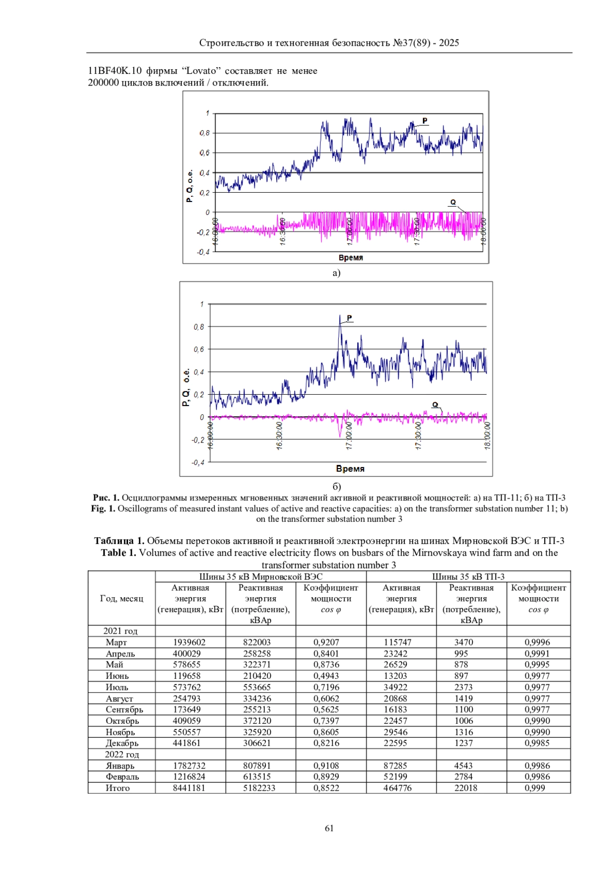 В статье проведено исследование работы модульных компенсаторов реактивной мощности на Мирновской и Пресноводненской ветроэлектростанциях. Для этого приведены измерения активной и реактивной мощностей за краткие промежутки времени: несколько часов для Мирновской ветроэлектростанции и за сутки для Пресноводненской, а также значения для каждого месяца в течение одного года. Колебания реактивной мощности при использовании компенсаторов реактивной мощности могут быть очень незначительными, в основном за счет времени коммутации, а эффективность обоснована повышением коэффициентов мощности до значений, близких к единице.