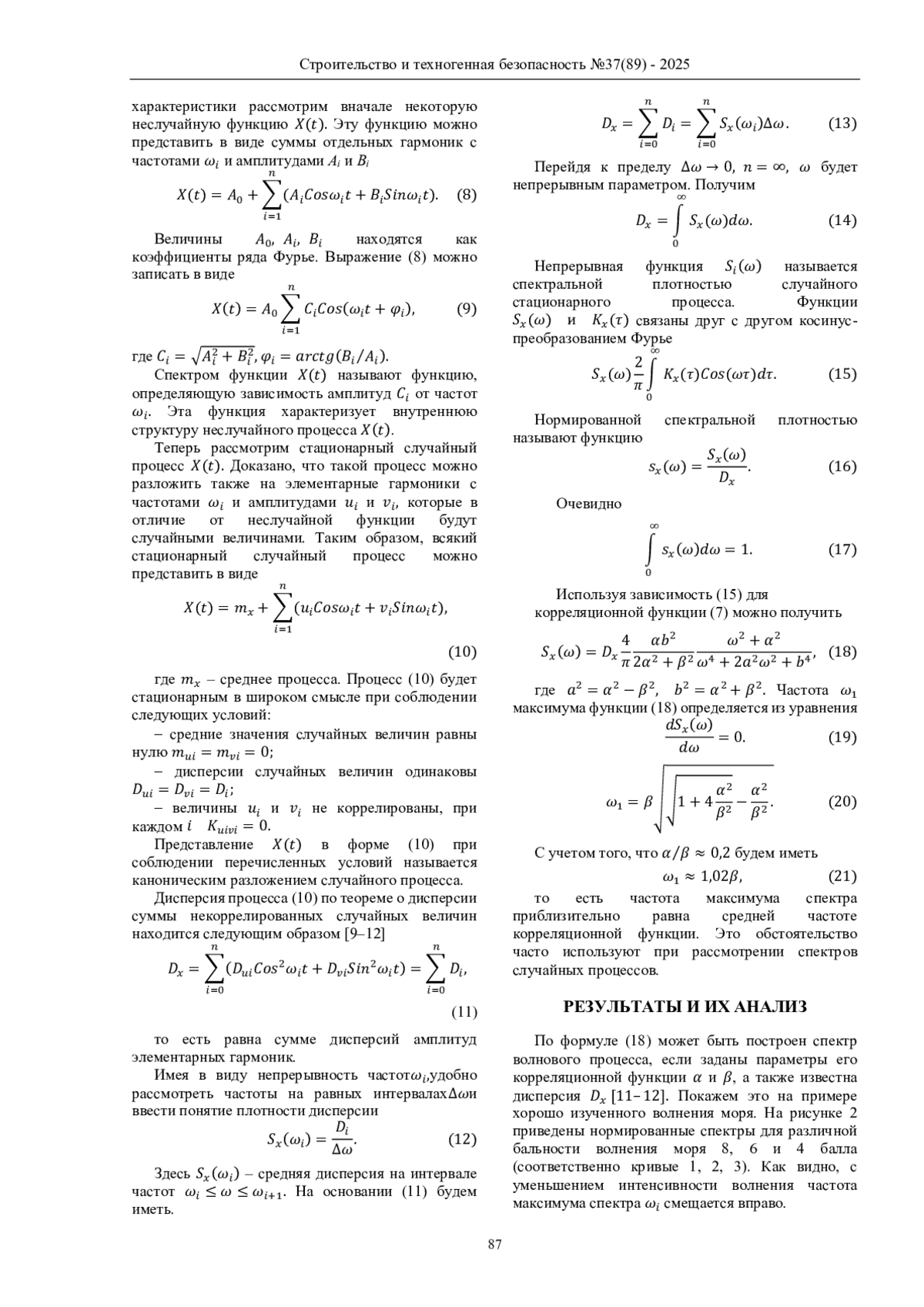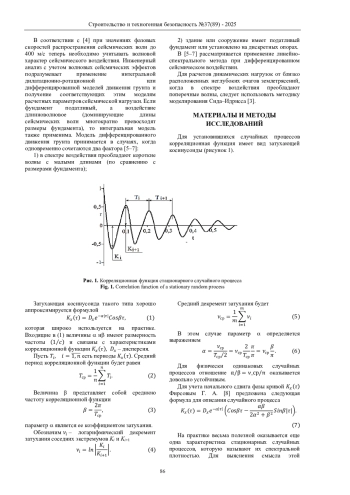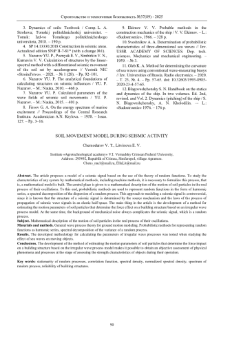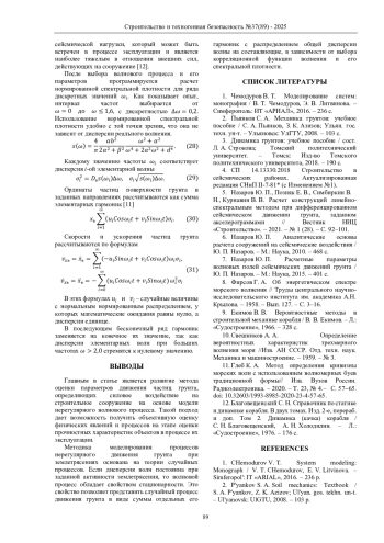 Выводы. Развитие метода оценки параметров движения частиц грунта, определяющих силовое воздействие на строительное сооружение на основе модели нерегулярного волнового процесса, дает возможность получить объективную оценку физических явлений и процессов на этапе оценки прочностных характеристик объектов в процессе их эксплуатации.