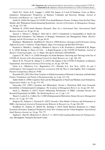 11. Belitski M., Guenther C., Kritikos A. S., Thurik R. (2022) Economic Effects of the COVID-19 Pandemic on Entrepreneurship and Small Businesses // Small Business Economics. No. 58. Pp. 593-609.