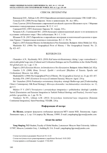 1. Винокуров Е.Ю., Либман А.М. (2012) Евразийская континентальная интеграция. СПб: ЕАБР. 224 с.