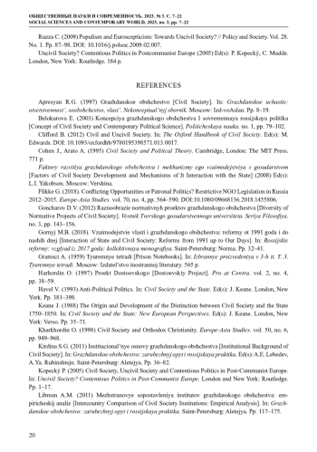 32. Ruzza C. (2009) Populism and Euroscepticism: Towards Uncivil Society? // Policy and Society. Vol. 28. No. 1. Pp. 87-98. DOI: 10.1016/j.polsoc.2009.02.007