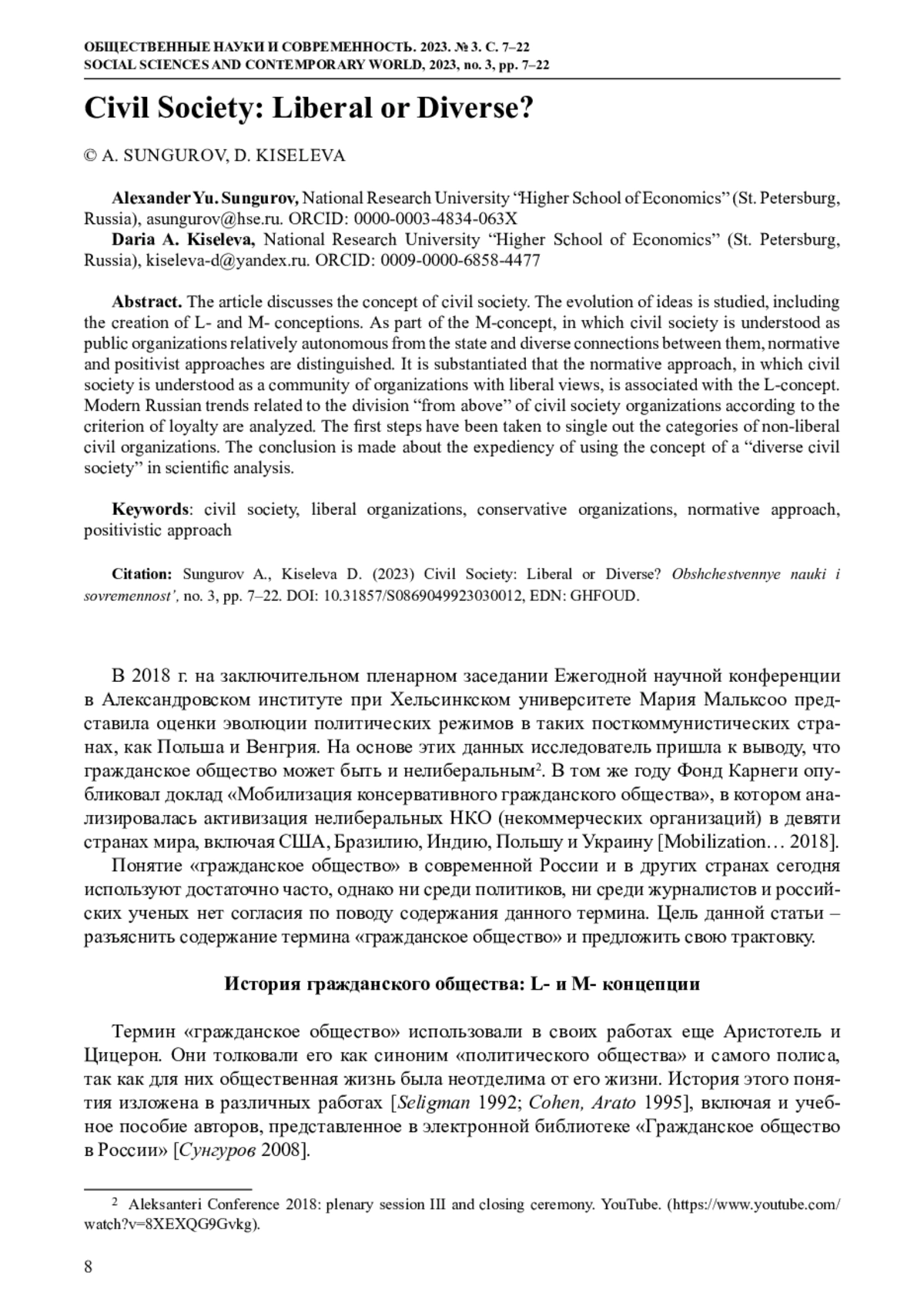 В 2018 г. на заключительном пленарном заседании Ежегодной научной конференции в Александровском институте при Хельсинкском университете Мария Мальксоо представила оценки эволюции политических режимов в таких посткоммунистических странах, как Польша и Венгрия. На основе этих данных исследователь пришла к выводу, что гражданское общество может быть и нелиберальным2. В том же году Фонд Карнеги опубликовал доклад «Мобилизация консервативного гражданского общества», в котором анализировалась активизация нелиберальных НКО (некоммерческих организаций) в девяти странах мира, включая США, Бразилию, Индию, Польшу и Украину [Mobilization… 2018]