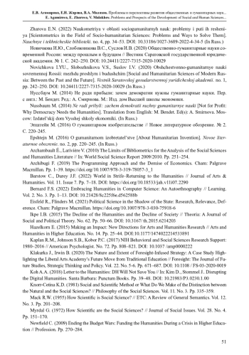 20. Newfield C. (2009) Ending the Budget Wars: Funding the Humanities During a Crisis in Higher Education // Profession. Pp. 270-284.