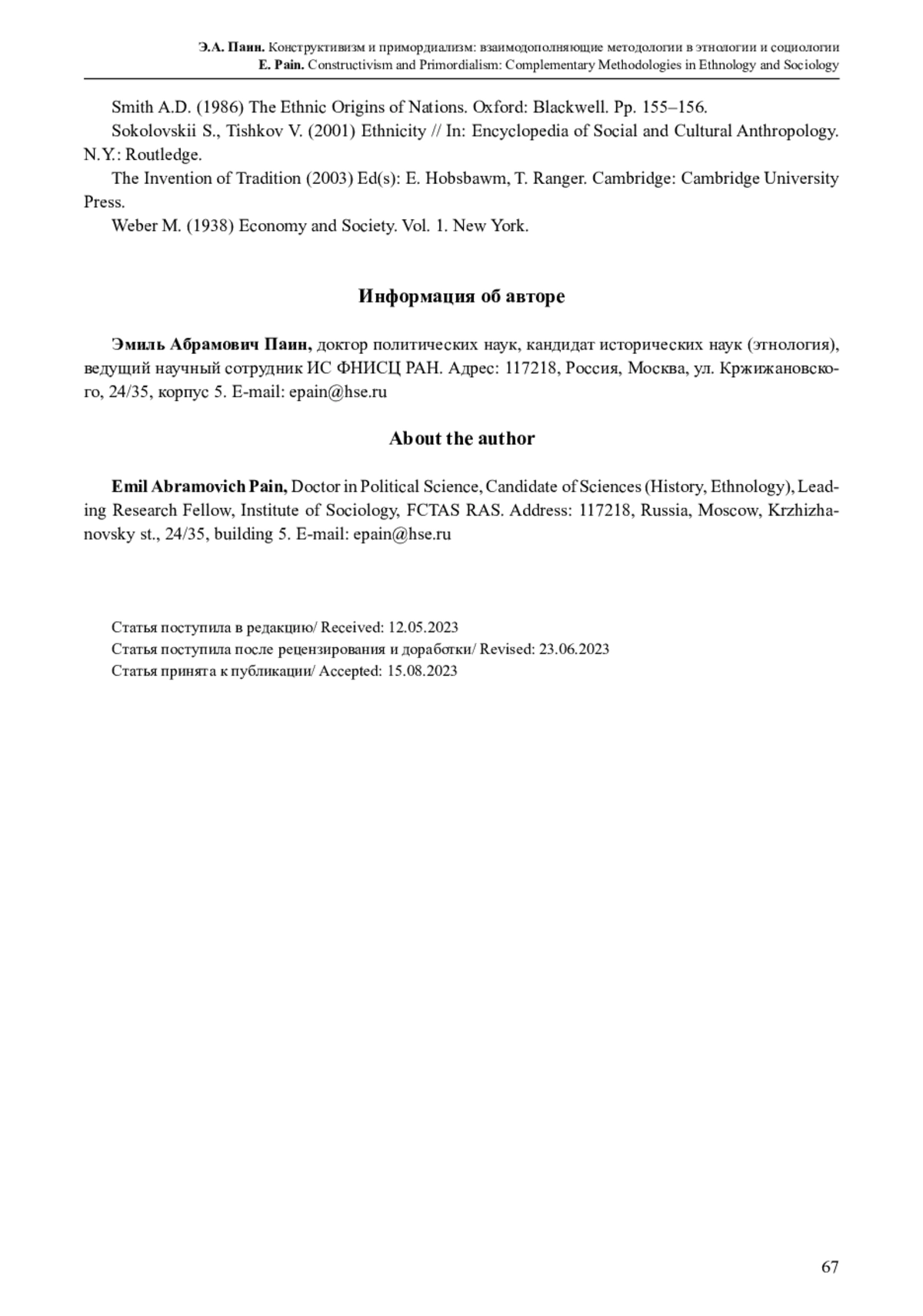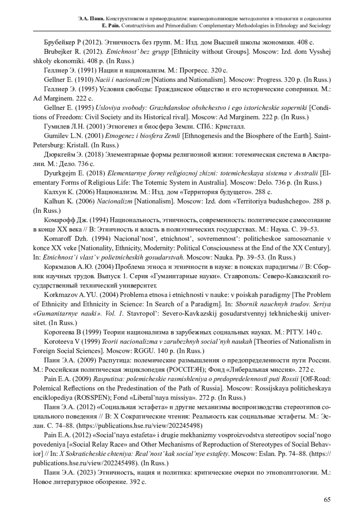 17. Паин Э.А. (2023) Этничность, нация и политика: критические очерки по этнополитологии. М.: Новое литературное обозрение. 392 с. EDN: ZZIMSR