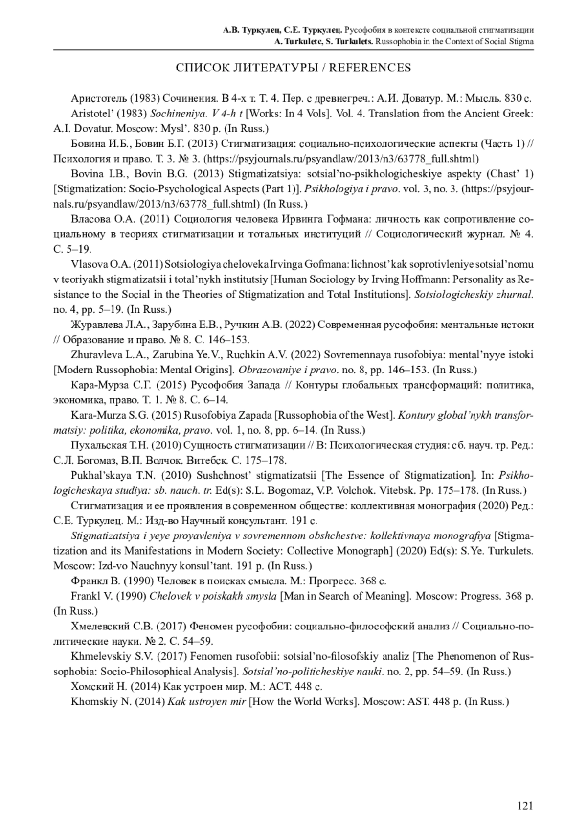 2. Бовина И.Б., Бовин Б.Г. (2013) Стигматизация: социально-психологические аспекты (Часть 1) // Психология и право. Т. 3. № 3. (https://psyjournals.ru/psyandlaw/2013/n3/63778_full.shtml).