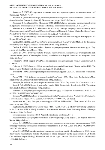 6. Губанов С. (2022) Россия и США: соотношение производительности труда // Экономист. № 9. С. 19-21.