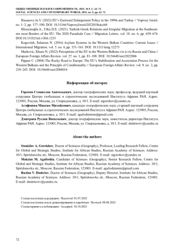 13. Hasanova Ja.V. (2022) EU’s Eastward Enlargement Policy in the 1990s and Turkey // Voprosy Istorii. no. 1-2, рp. 177-190. DOI: 10.31166/VoprosyIstorii202201Statyi68 EDN: HZHDOX