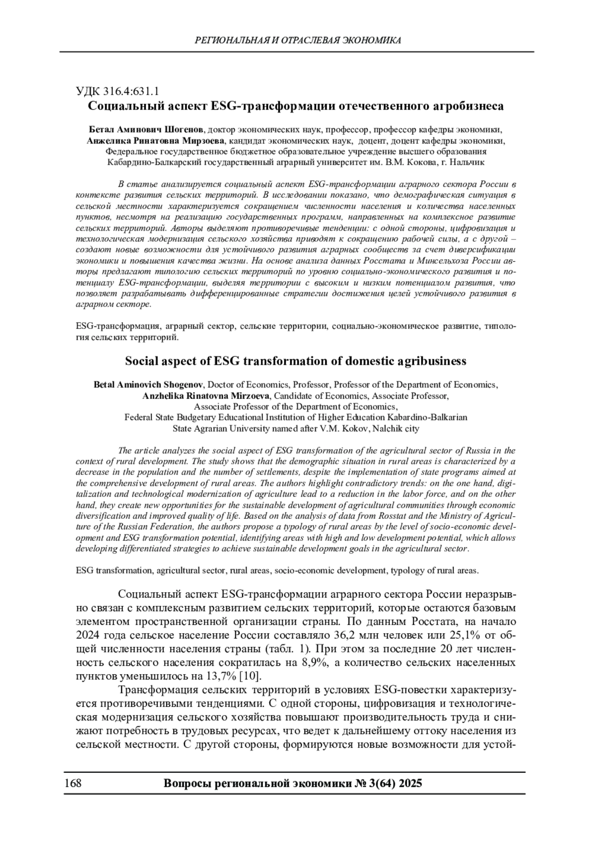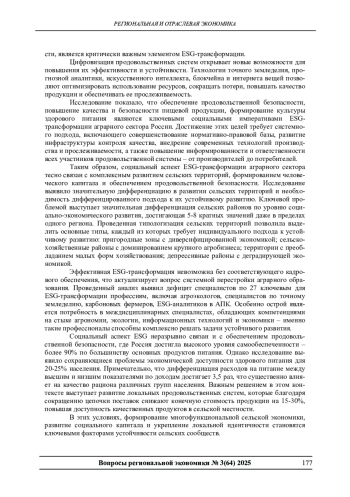 Социальный аспект ESG-трансформации аграрного сектора России неразрывно связан с комплексным развитием сельских территорий, которые остаются базовым элементом пространственной организации страны.