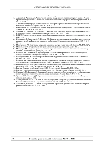 3. Богдановский В.А. Человеческий капитал в аграрном секторе: формирование и эффективность использования. М.: ВНИИЭСХ, 2023. 184 с.