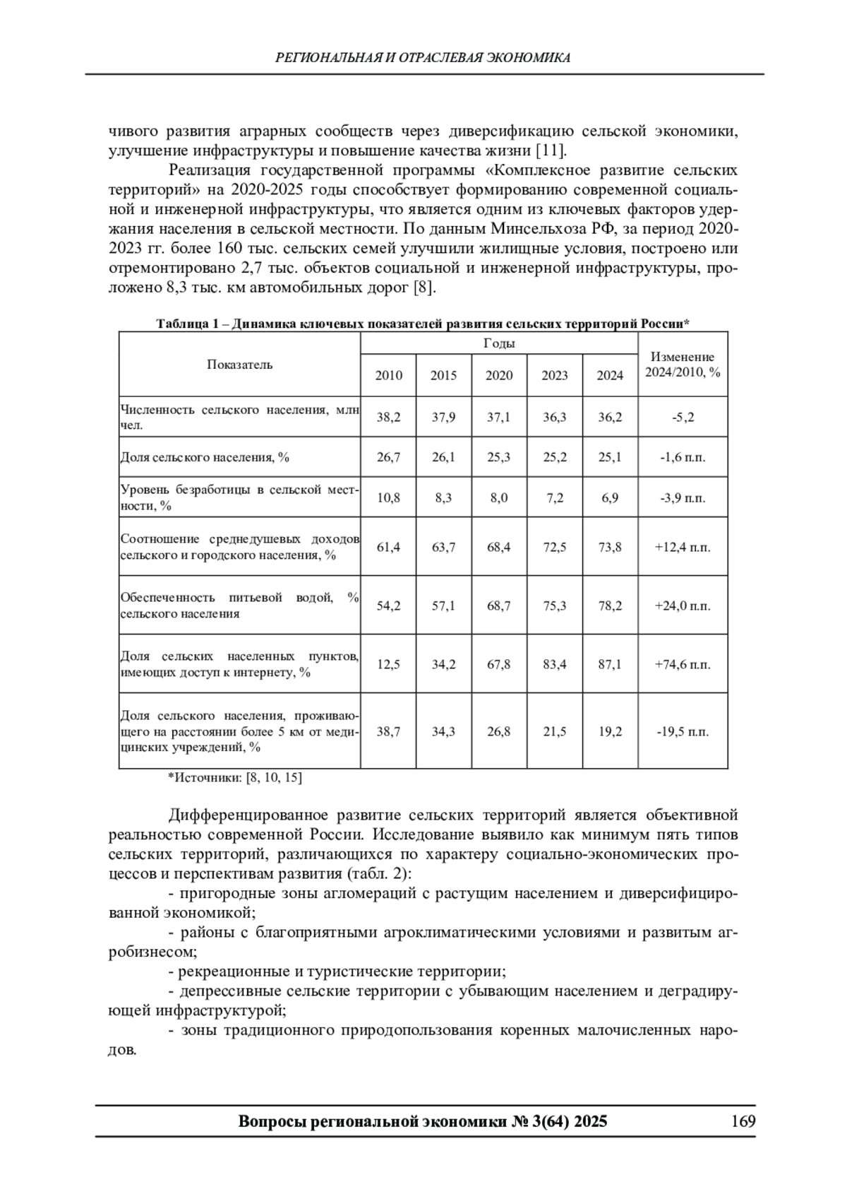 10. Нефедова Т.Г., Мкртчян Н.В. Трансформация сельских территорий России в XXI веке: тенденции, факторы, механизмы // Вопросы географии. 2023. № 156. С. 24-48.