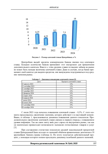 3. Голосенко О.Г., Беспалов Р.А. Влияние ключевой ставки на устойчивость финансового рынка страны // Тенденции и перспективы развития банковской системы в современных экономических условиях. Материалы VI всероссийской научно-практической конференции с международным участием г. Брянск, 26 декабря 2024 года. С. 148-153.