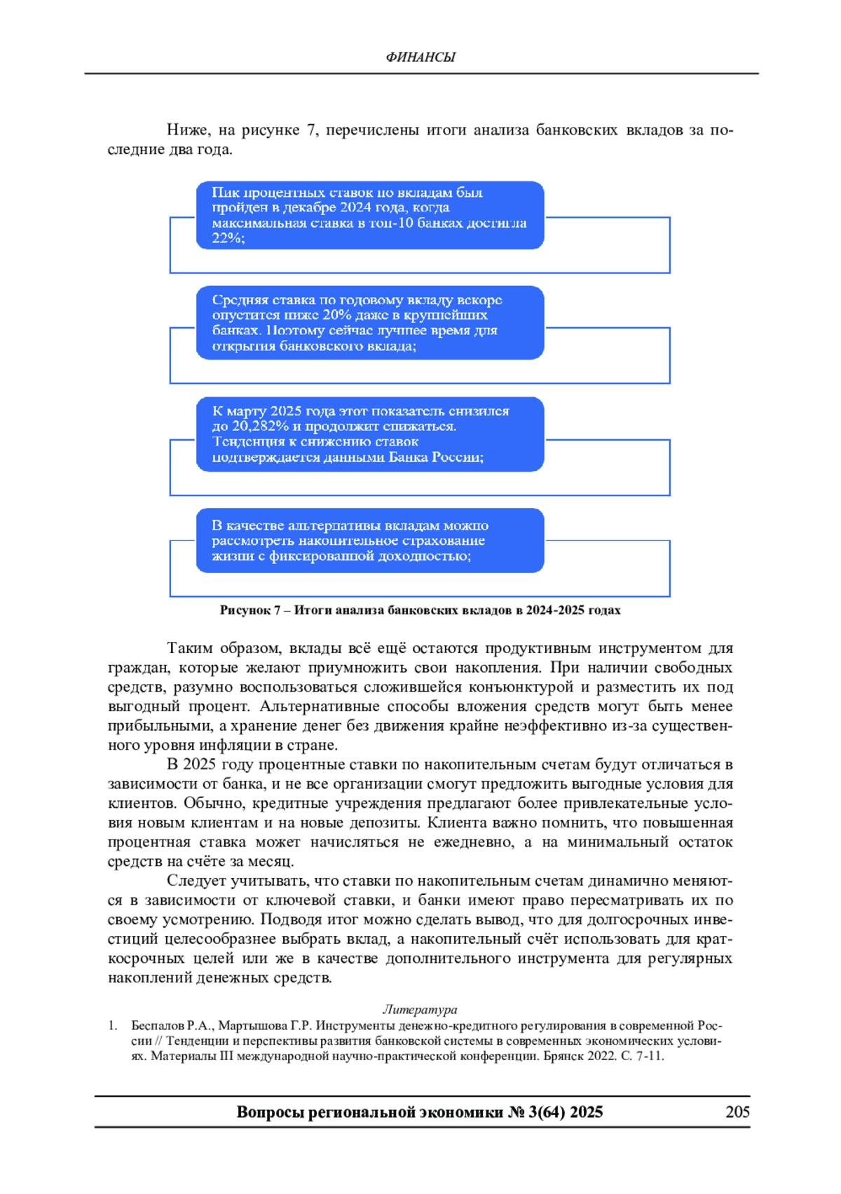 5. “Бробанк” Сервис подбора финансовых услуг [Электронный ресурс]. Режим доступа: https://brobank.ru/chto-budet-s-vkladami-v-2025/(дата обращения 10.04.2025).