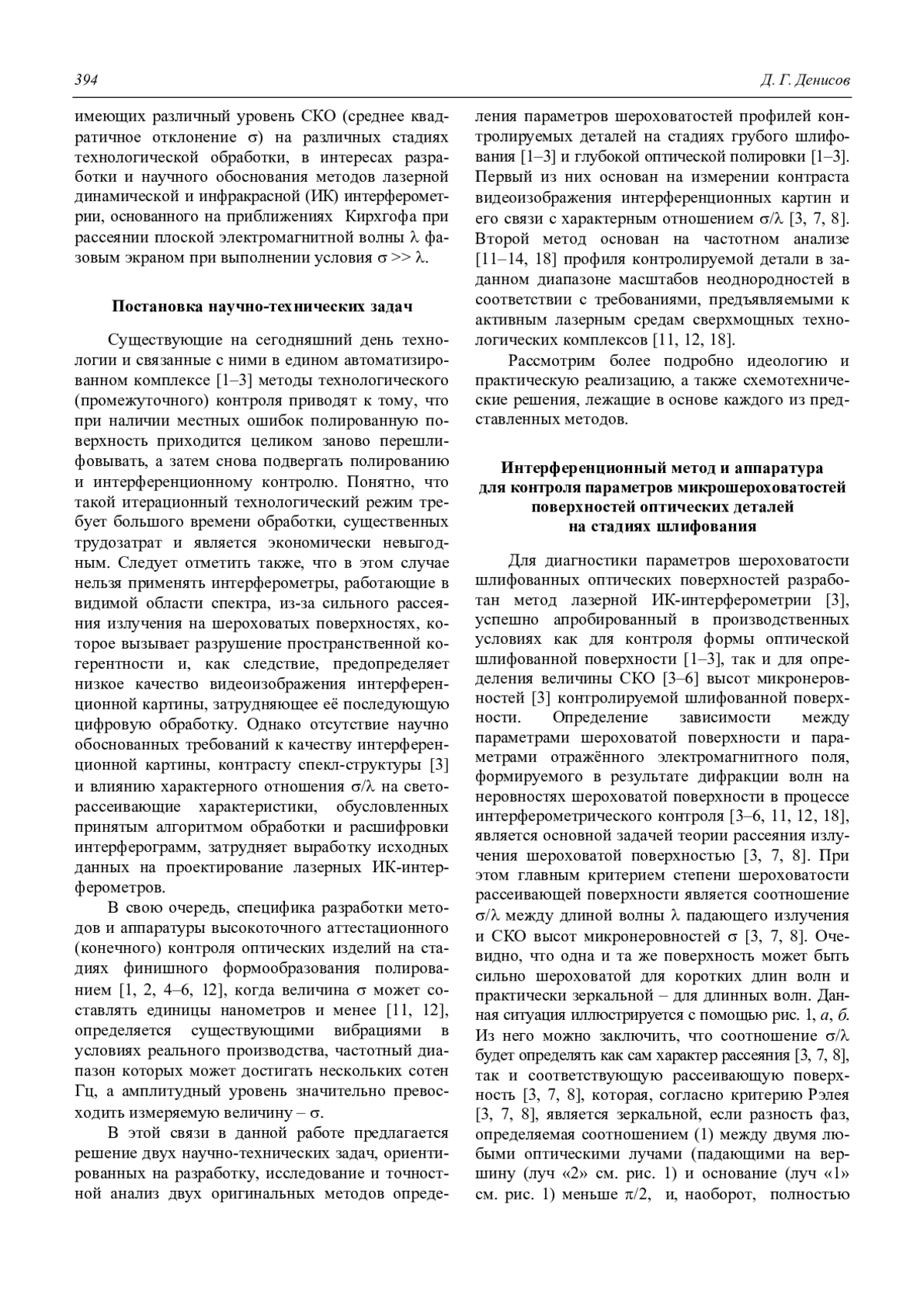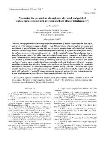 D. G. Denisov Measuring the parameters of roughness of ground and polished optical surfaces using high-precision methods of laser interferometry 393