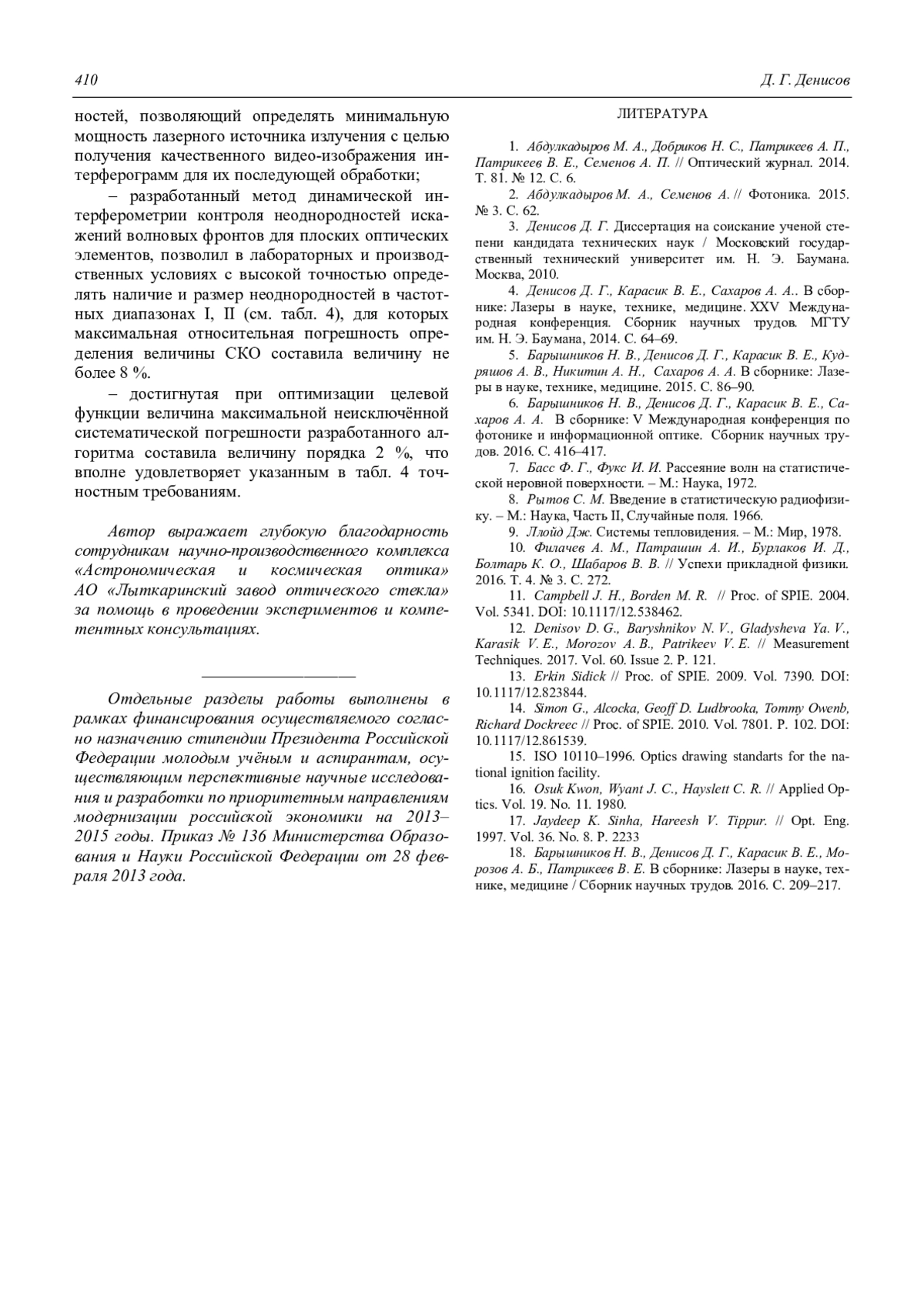 4. Денисов Д. Г., Карасик В. Е., Сахаров А. А.. В сборнике: Лазеры в науке, технике, медицине. ХХV Международная конференция. Сборник научных трудов. МГТУ им. Н. Э. Баумана, 2014. С. 64–69.