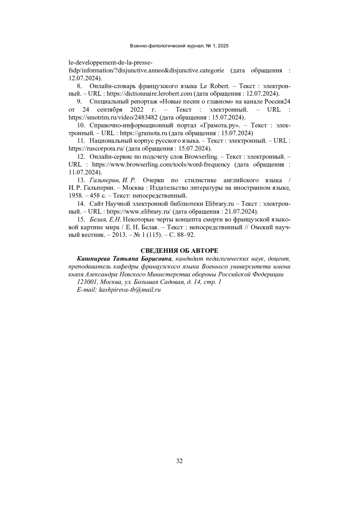 8. Онлайн-словарь французского языка Le Robert. - Текст: электронный. - URL: https://dictionnaire.lerobert.com (дата обращения: 12.07.2024).