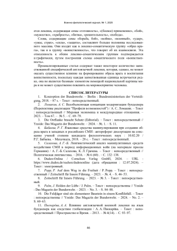 11. Пискарёва, А. А. Влияние англоязычной военной лексики на язык бундесвера как следствие глобализации / А. А. Пискарёва. - Текст: непосредственный // Пространство и Время. - 2013. - № 4(14). - С. 93-97. EDN: RKXOYL