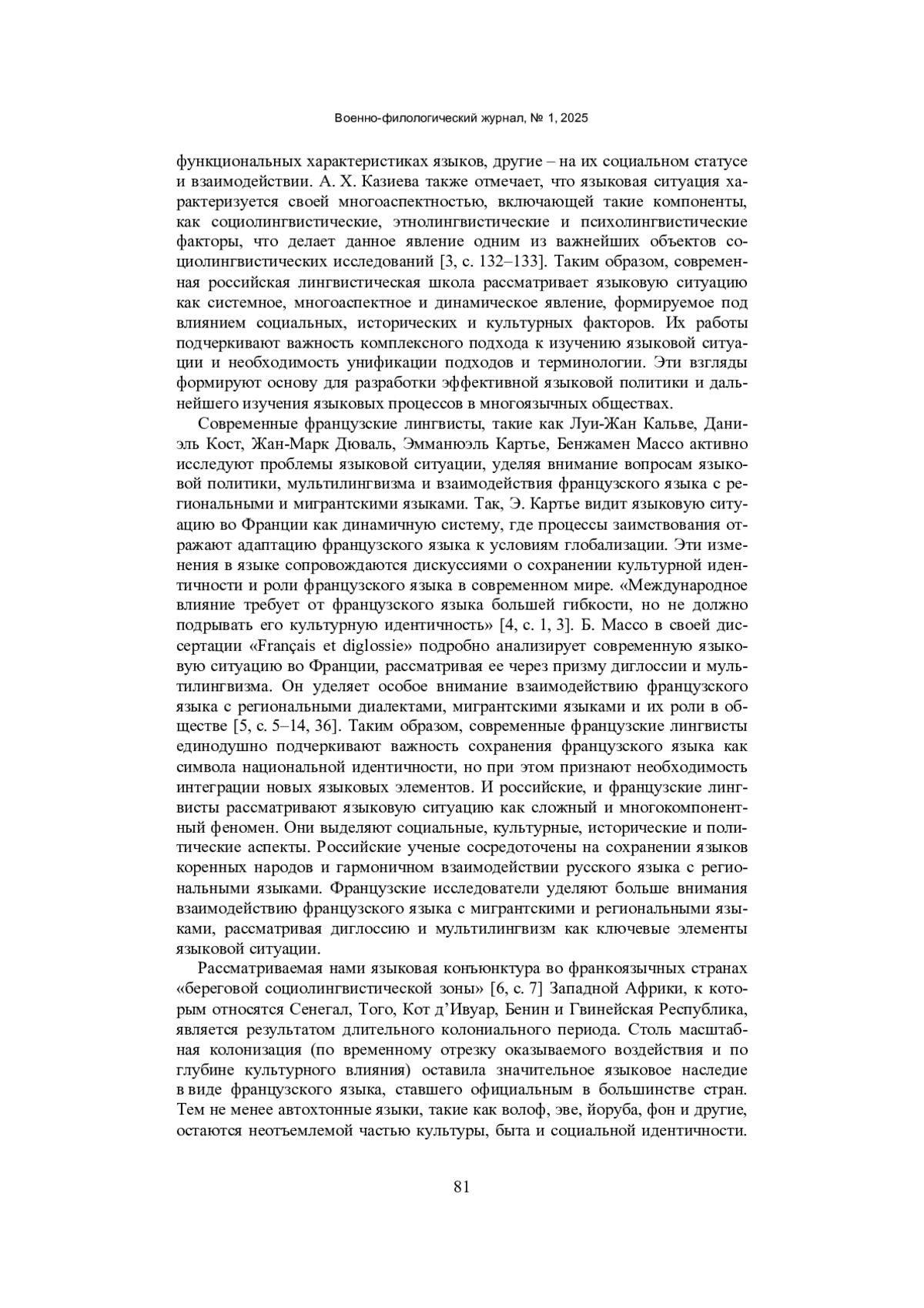 3. Казиева, А. Х. Языковая ситуация как объект исследования в отечественной лингвистике / А. Х. Казиева. - Текст: непосредственный // Форум молодежной науки. - 2020. - № 2. - С. 130-134. EDN: ORDOIV