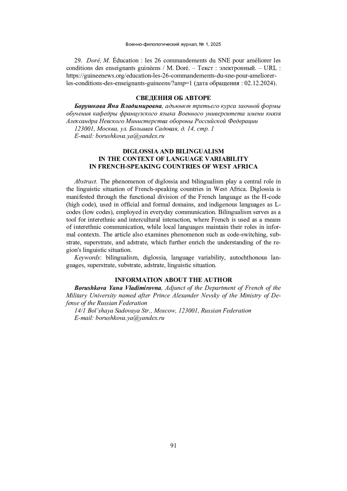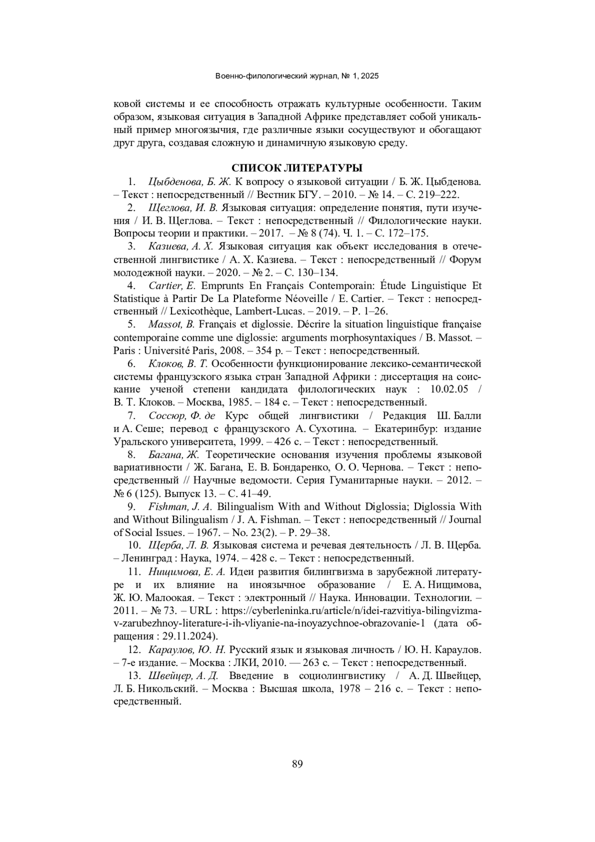 9. Fishman, J. A. Bilingualism With and Without Diglossia; Diglossia With and Without Bilingualism / J. A. Fishman. - Текст: непосредственный // Journal of Social Issues. - 1967. - No. 23(2). - P. 29-38.