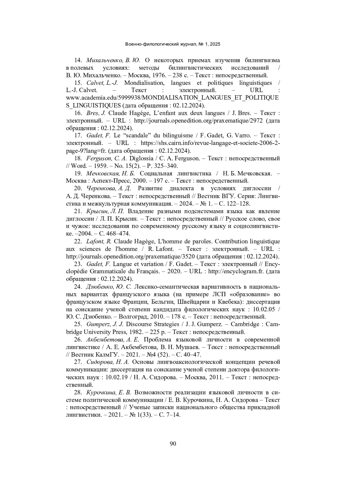 17. Gadet, F. Le “scandale” du bilinguisme / F. Gadet, G. Varro. - Текст: электронный. - URL: https://shs.cairn.info/revue-langage-et-societe-2006-2-page-9?lang=fr. (дата обращения: 02.12.2024).
