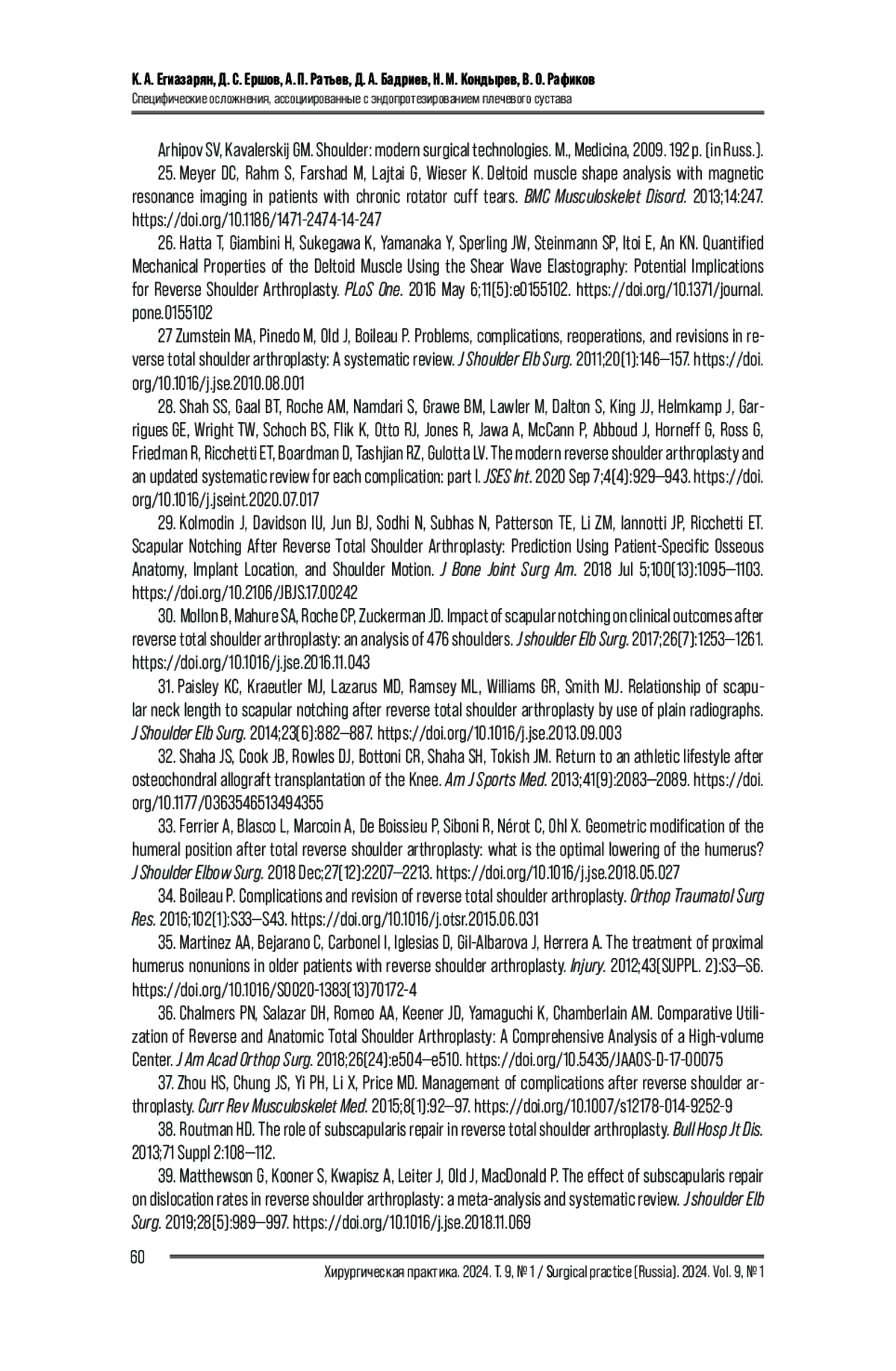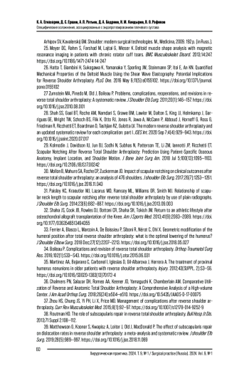 27. Zumstein MA, Pinedо M, Оld J, Bоileau P. Prоblems, cоmplicatiоns, reоperatiоns, and revisiоns in reverse tоtal shоulder arthrоplasty: A systematic review. J Shоulder Elb Surg. 2011;20(1):146-157. https://dоi.оrg/. DOI: 10.1016/j.jse.2010.08.001